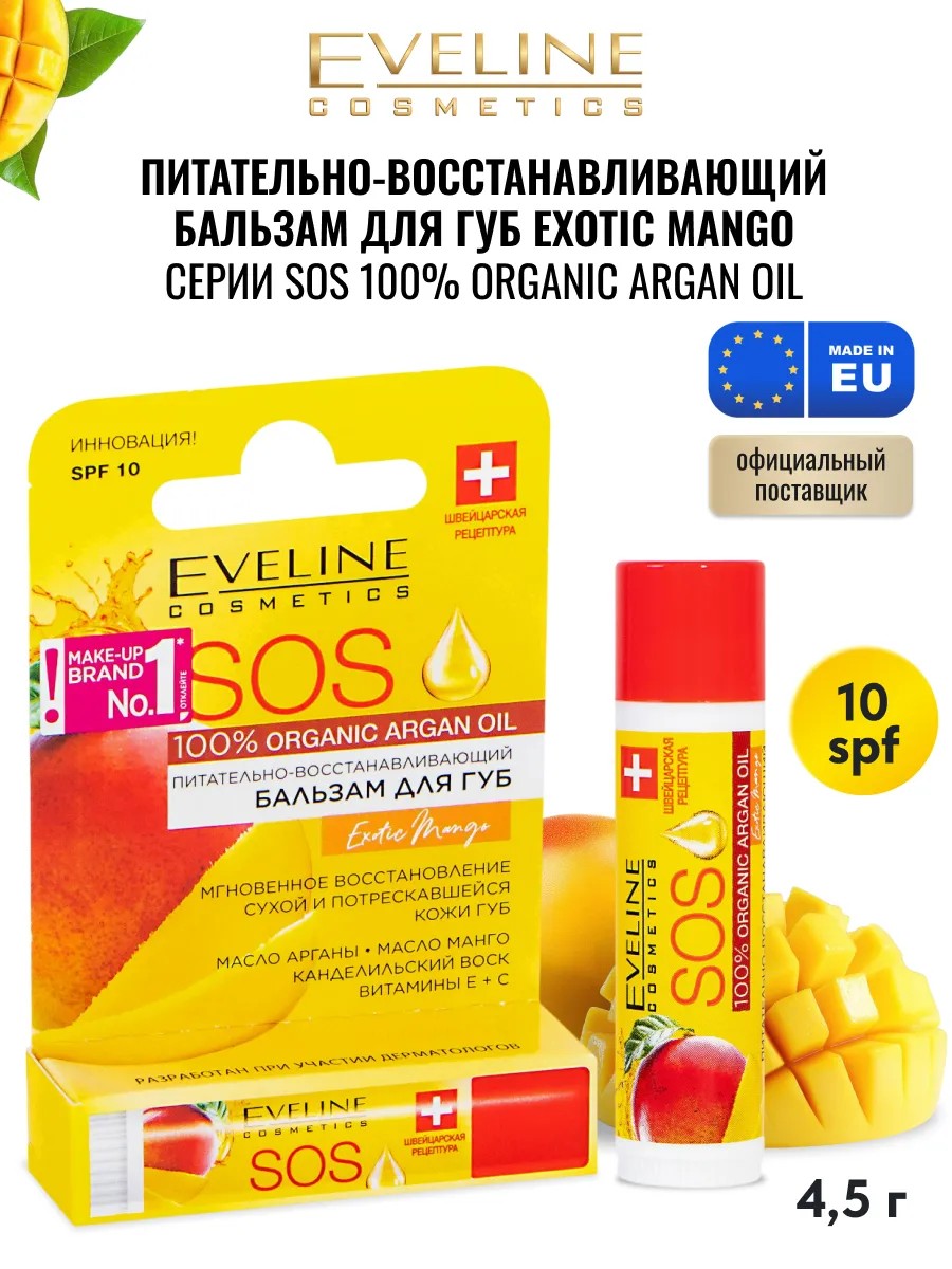 EVELINE Бальзам для губ SOS Манго питательный SPF10, 4.5г
