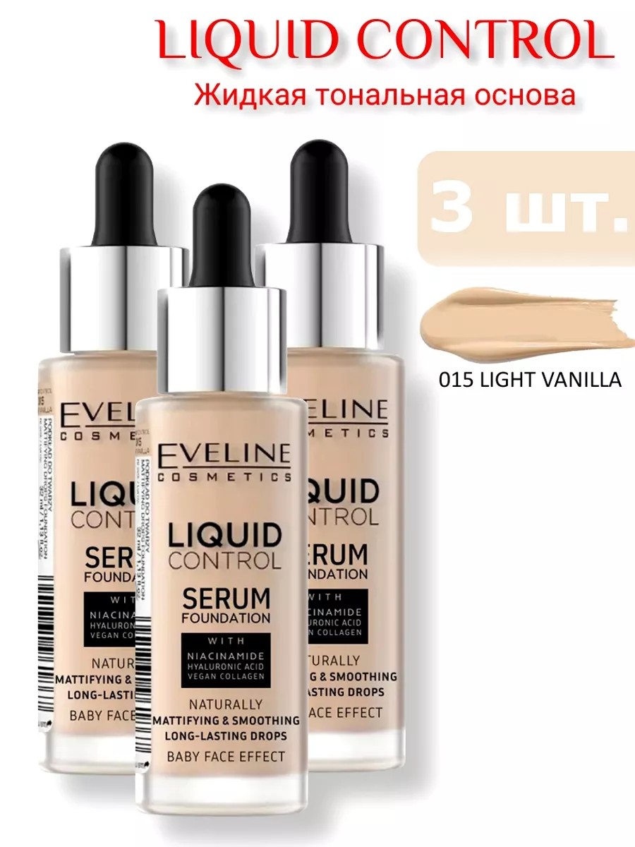 EVELINE Жидкая тональная основа LIQUID CONTROL №015, 32мл. -3шт.
