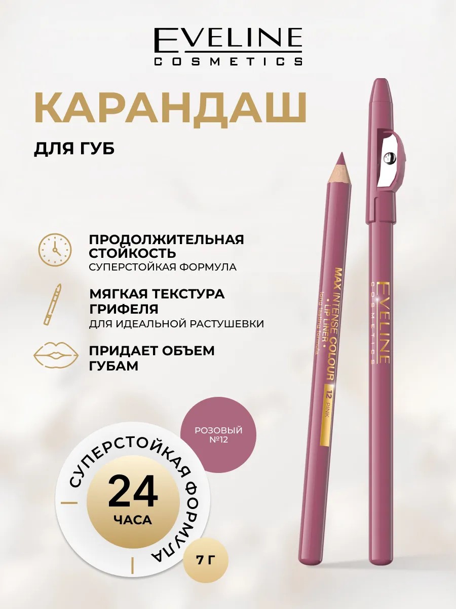 EVELINE Карандаш для губ MAX INTENSE контурный №12 PINK