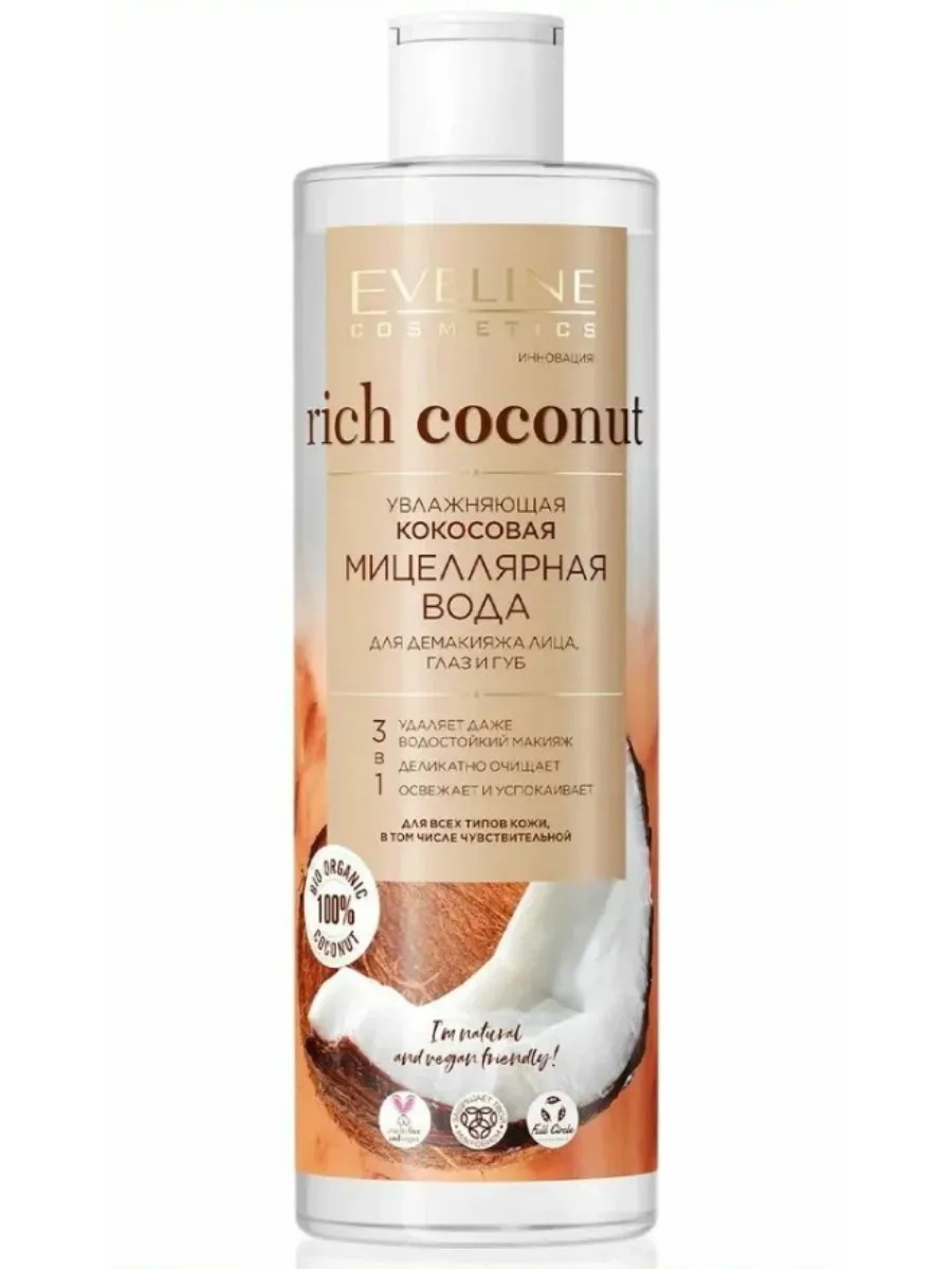 EVELINE Мицеллярная вода увлажняющая Кокосовая для лица 400 мл