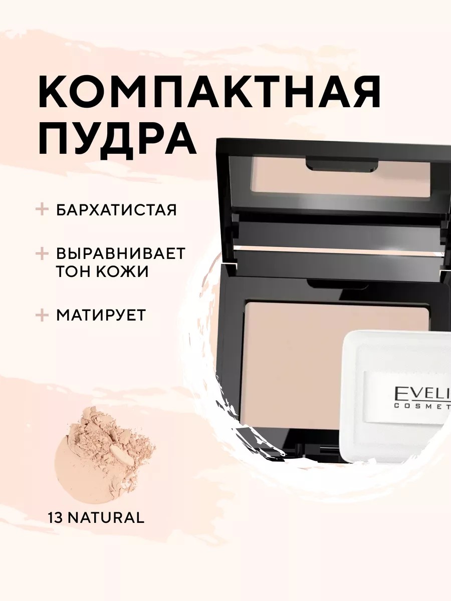 EVELINE Пудра компактная BEAUTY LINE бархатистая №13 Natural, 9 гр