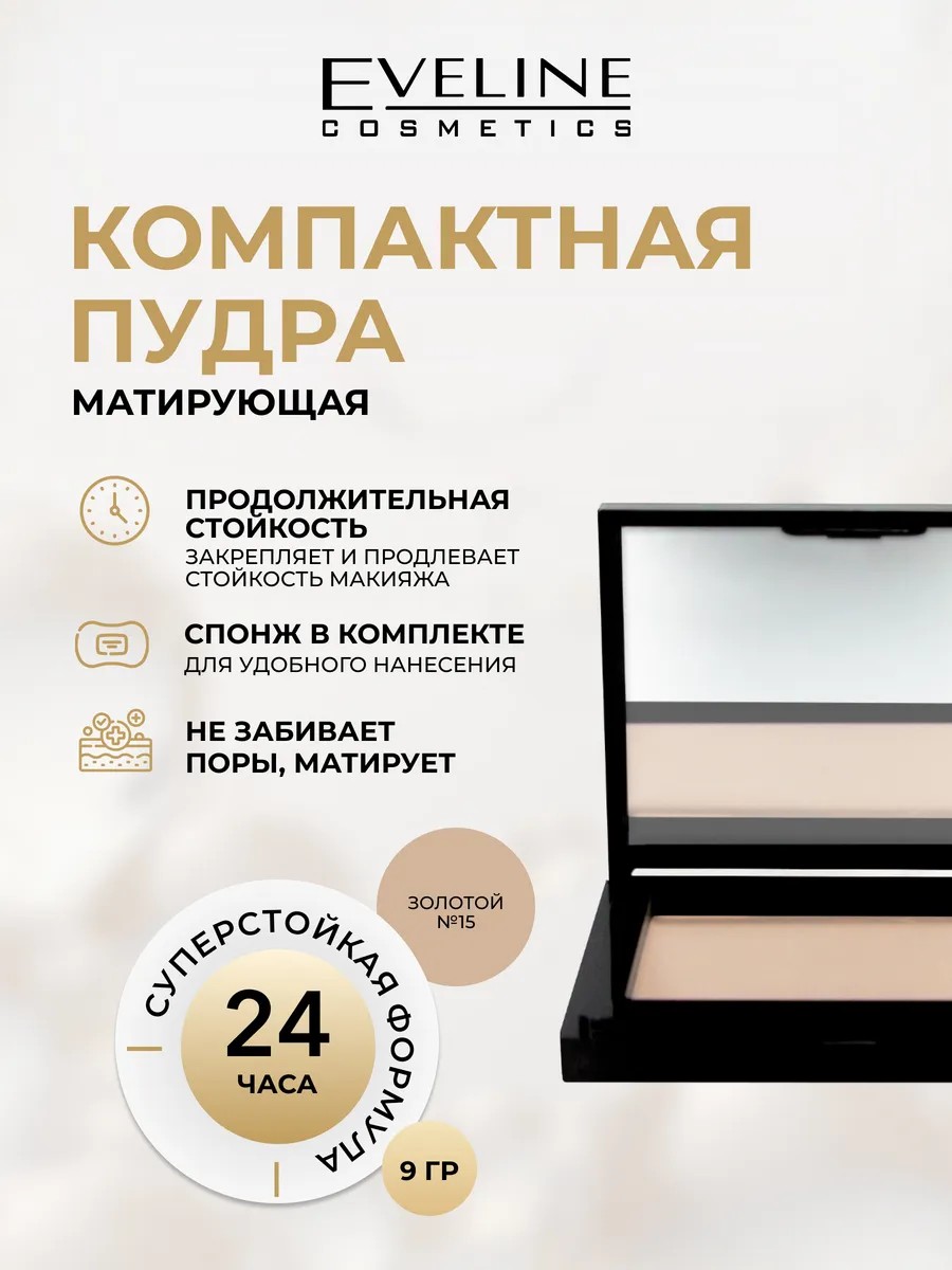 Eveline Пудра компактная BEAUTY LINE бархатистая тон №15 Golden, 9 г