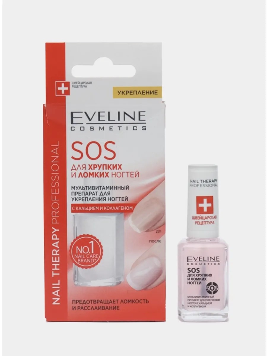 Nail Therapy Professional SOS for brittle and fragile nails is a multivitamin strengthening product with calcium, collagen, and vitamins B5 and E that helps restore damaged nails in just a few days. The active formula deeply nourishes, moisturizes, and strengthens nails, preventing microcracks, splitting, and breakage. This product improves the elasticity of the nail plate, giving it strength and a well-groomed, healthy appearance after just one use.