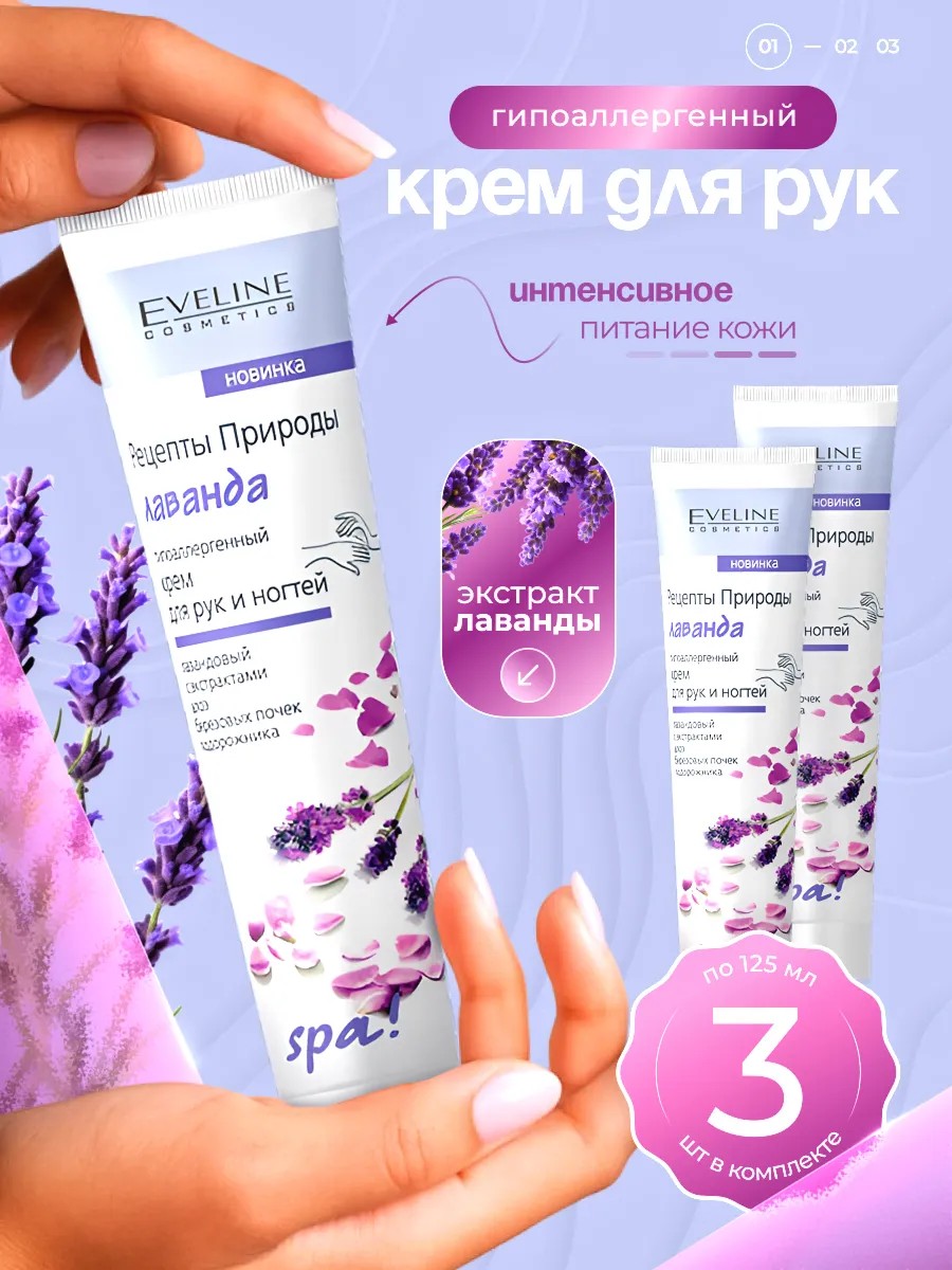 EVELINE Spa Гипоаллергенный Крем для рук и ногтей Лаванда, 125 мл.-3шт.