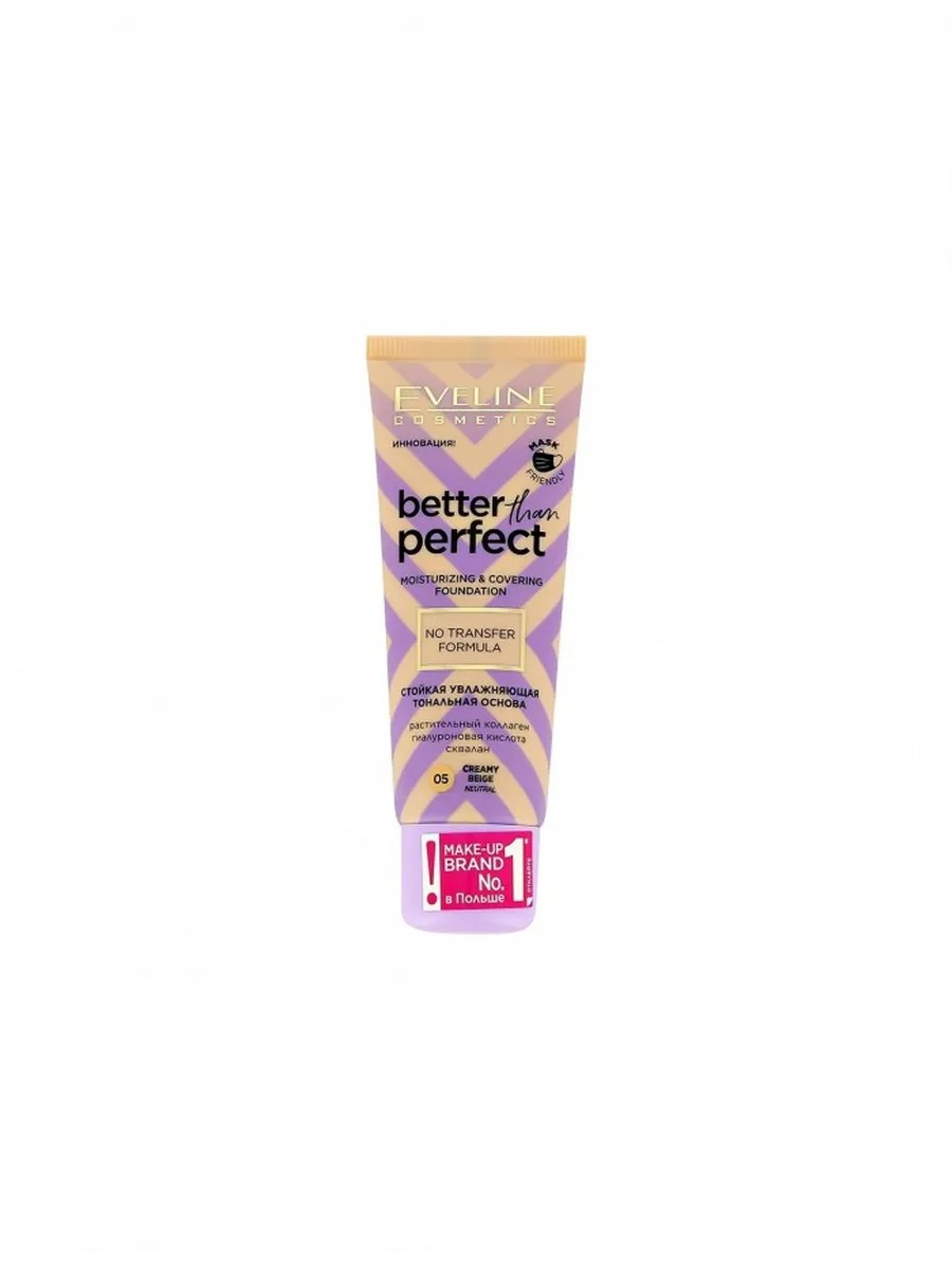 Стойкая увлажняющая тональная основа новой генерации Better Than Perfect с формулой NO TRANSFER - УСТОЙЧИВАЯ К СТИРАНИЮ - гарантирует безупречный макияж в течении всего дня, не оставляя следов на одежде или маске . Формула включает в себя активные компоненты, которые обеспечивают деликатный уход за кожей лица и выравнивают его тон, создавая натуральный, сияющий вид . Входящие в состав ГИАЛУРОНОВАЯ КИСЛОТА и РАСТИТЕЛЬНЫЙ КОЛЛАГЕН увлажняют и регенерируют кожу, а натуральный СКВАЛАН придает ей мягкость и эластичность . ФОРМУЛА УСТОЙЧИВАЯ К НОШЕНИЮ МАСКИ