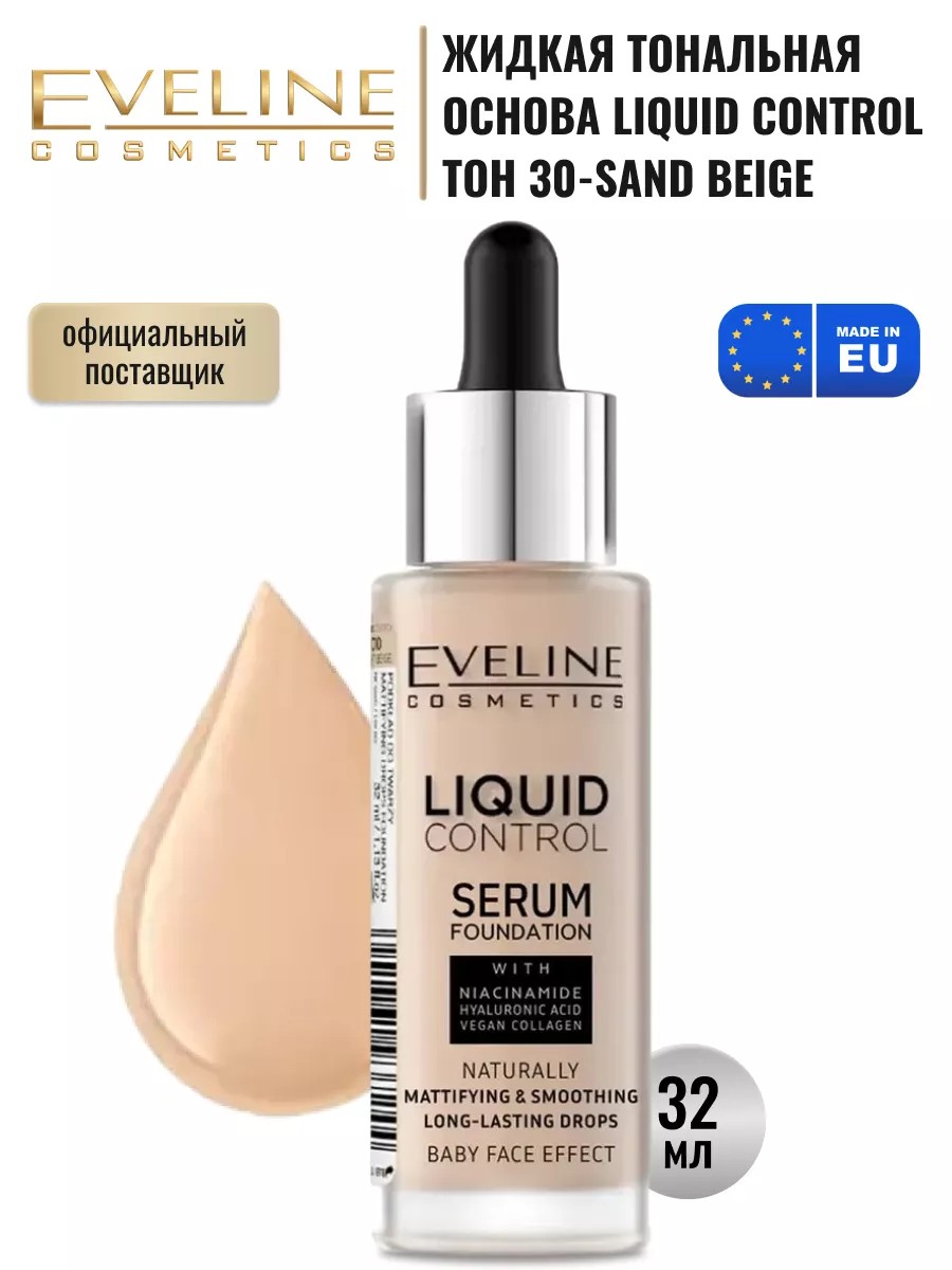 EVELINE Тональная основа LIQUID CONTROL матирующая №030-SAND BEIGE