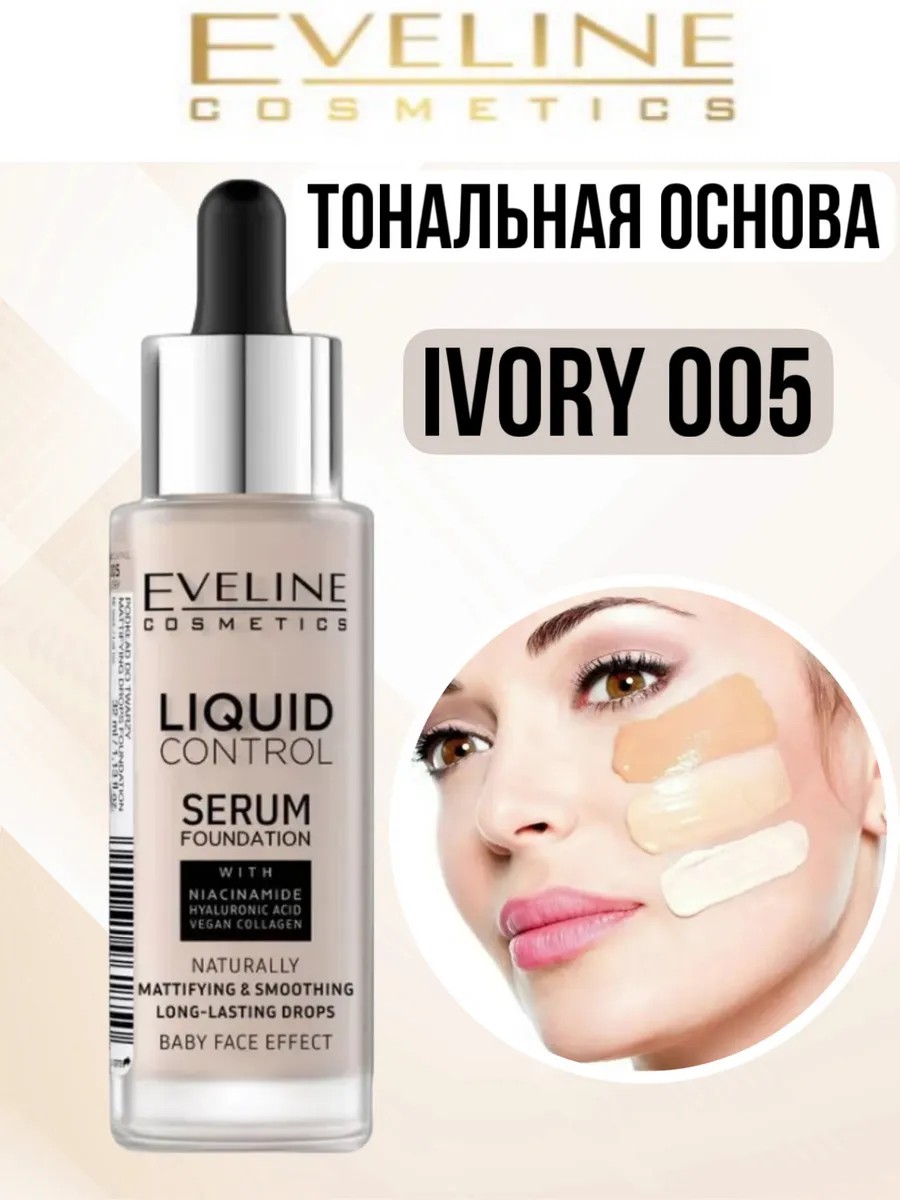 EVELINE Тональная основа матирующая LIQUID CONTROL тон №005 - IVORY