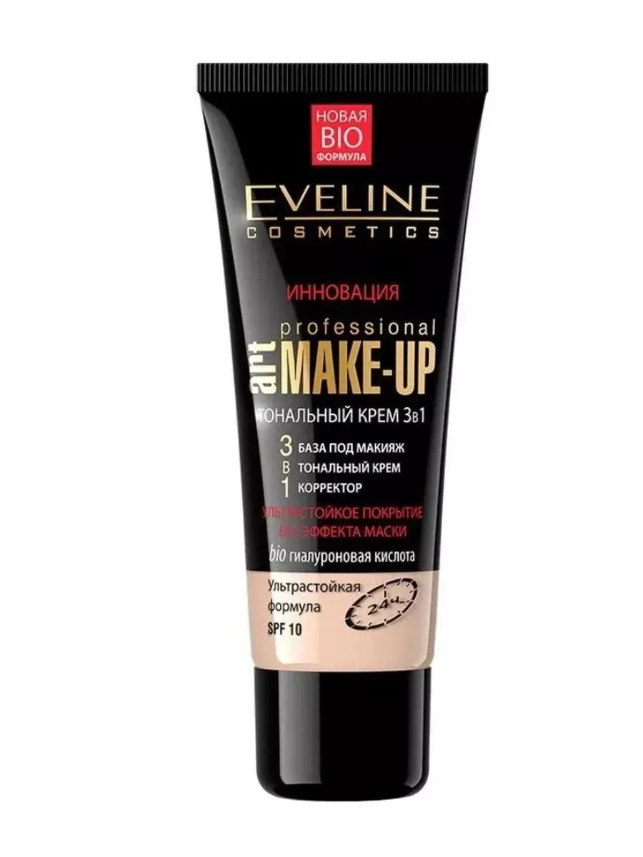 EVELINE Тональный крем 3в1 Art Professional Make Up Слоновая кость, 30 мл 1 шт. Необыкновенная тающая текстура и усовершенствованная рецептура, основанная на минеральных пигментах, обеспечивают потрясающий ультраестественный и мегастойкий макияж. Тональный крем Art Professional Make-Up выравнивает цвет лица и скрывает недостатки кожи без эффекта маски, гарантируя безупречный макияж в течение всего дня.