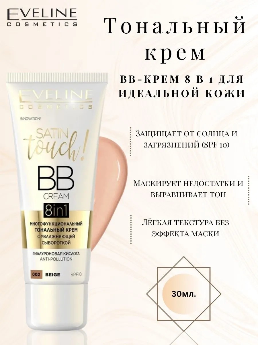 EVELINE Тональный крем BB Satin Touch 8в1, 002 beige, 30 мл
