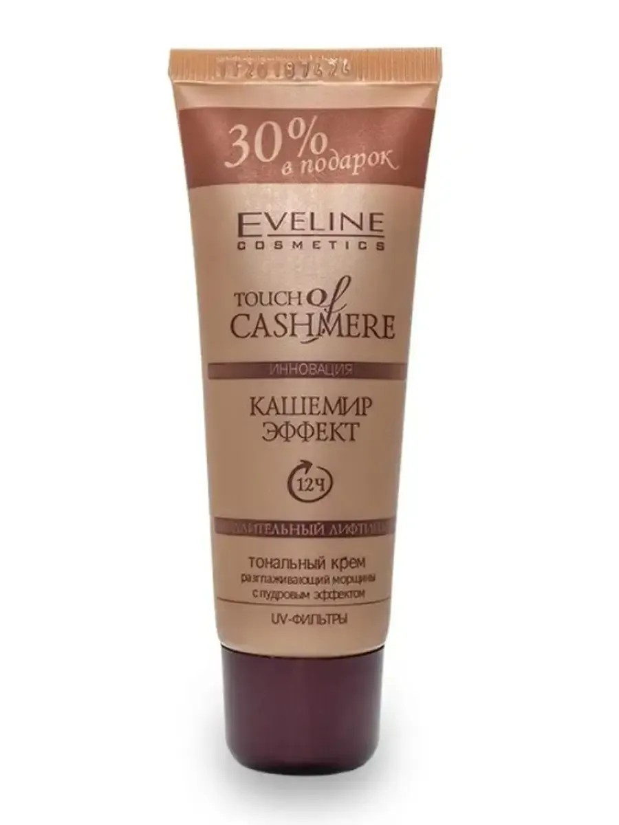 Eveline Тональный крем Touch of Cashmere Натуральный бежевый, 40 мл 1 шт. Необыкновенно стойкий тональный крем для всех типов кожи. Благодаря содержанию сферических полимерных частиц превосходно скрывает все недостатки, не создавая при этом эффект маски. Витаминный комплекс (A, E, F, B5) восстанавливает и увлажняет кожу, а также нейтрализует свободные радикалы. Эффективность: Безупречный макияж до 12 часов. Не стирается. Не оставляет полос на коже. Не требует коррекции.