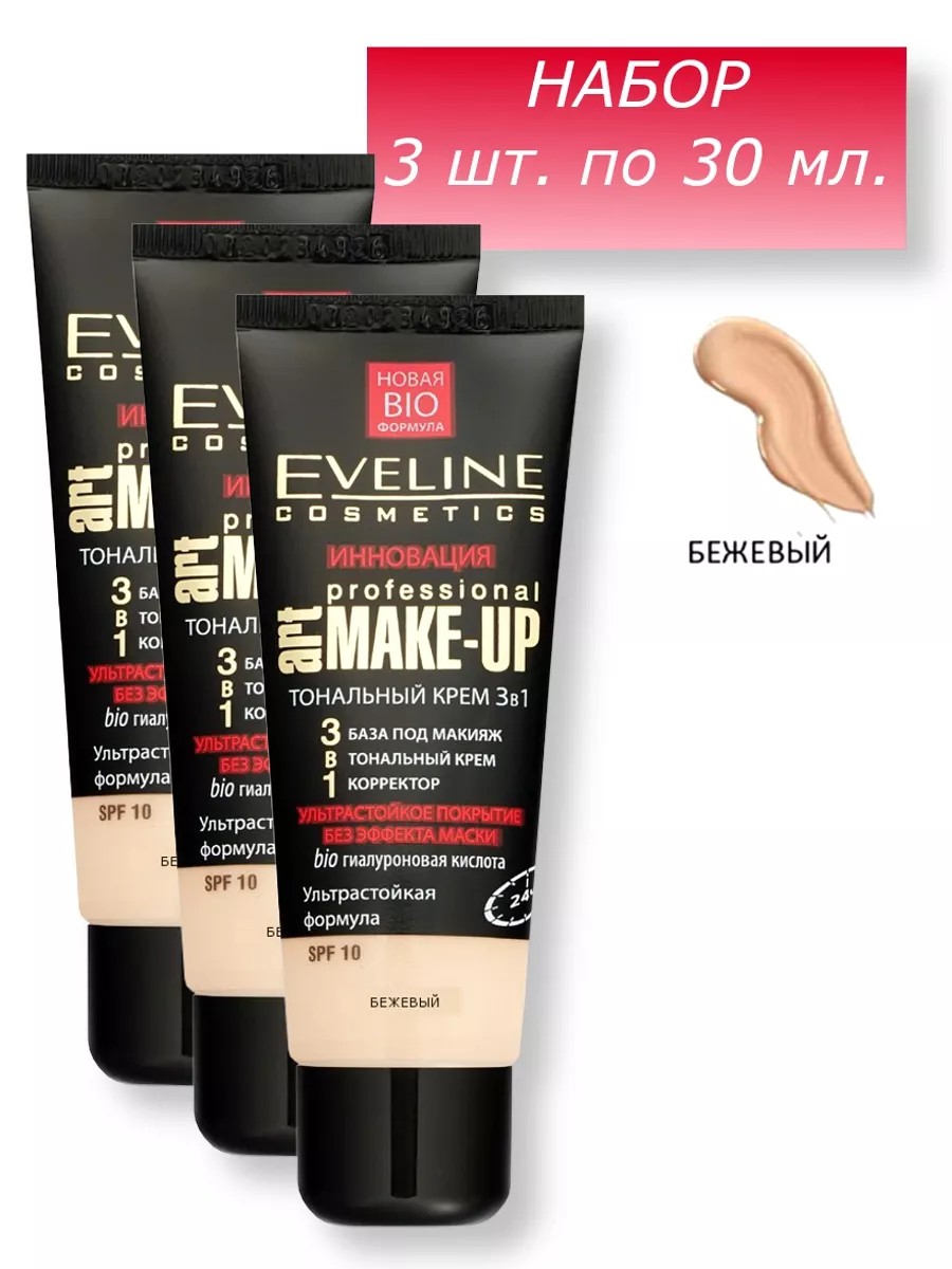 EVELINE Крем тональный для лица 3в1, 30мл. -3шт
