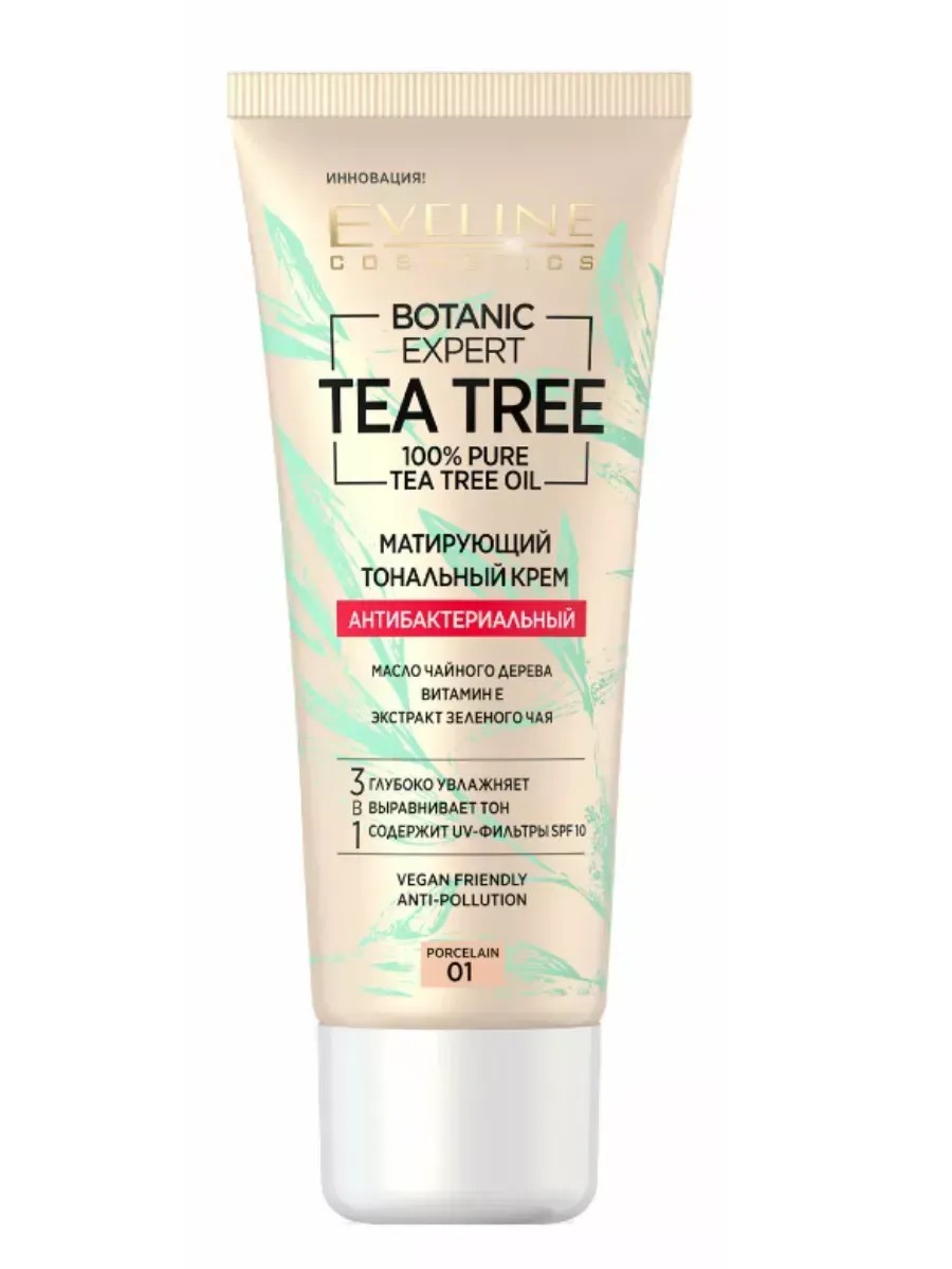 Тональный крем матирующий 3в1 01 30 мл. Матирующий антибактериальный тональный крем Botanic Expert Tea Tree придает коже сатиново-матовый финиш и гарантирует идеальный вид. Инновационная формула позволяет варьировать степень покрытия, скрывая несовершенства и покраснения. Крем не сушит кожу и не закупоривает поры.