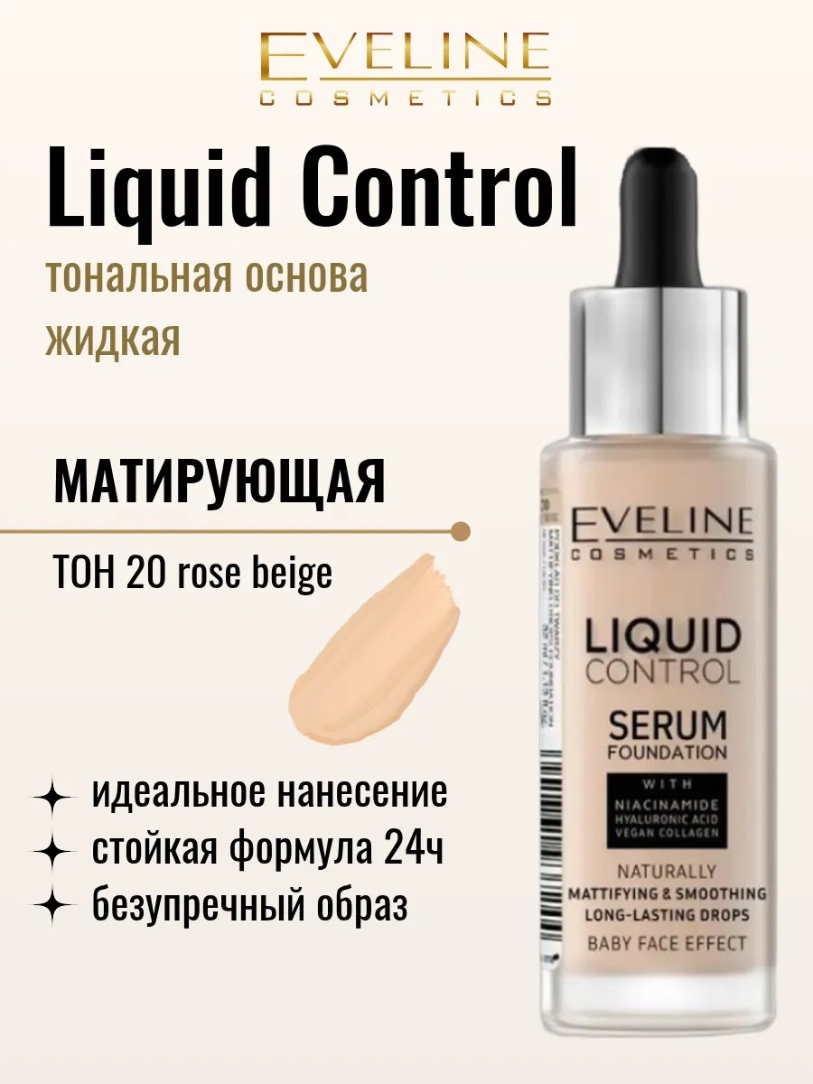 Тональная основа Liquid Control матирующая №020 rose beige 32 мл от EVELINE – это идеальное решение для тех, кто ищет средство декоративной косметики, способное совместить максимальную стойкость с легкостью и комфортом в использовании. Благодаря своей нежирной и легкой консистенции, это средство обеспечивает идеальное выравнивание тона кожи, эффективно скрывает недостатки и матирует в течение длительного времени — до 24 часов — без создания «эффекта маски». Кроме того, оно придаёт лицу естественное сияние, разглаживая рельеф кожи и создавая ухоженный вид.