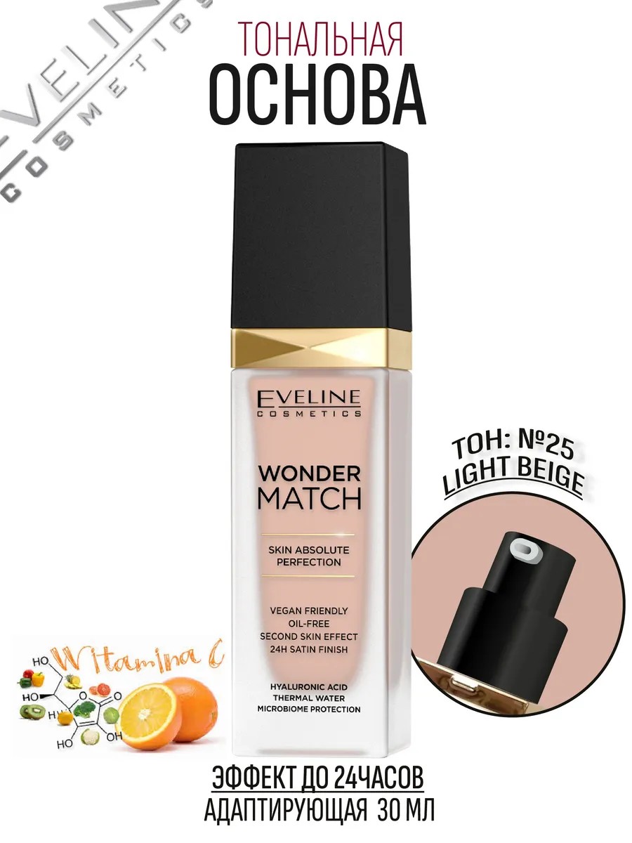 EVELINE Тональная основа для лица Wonder Match 25 Light beige 30 мл