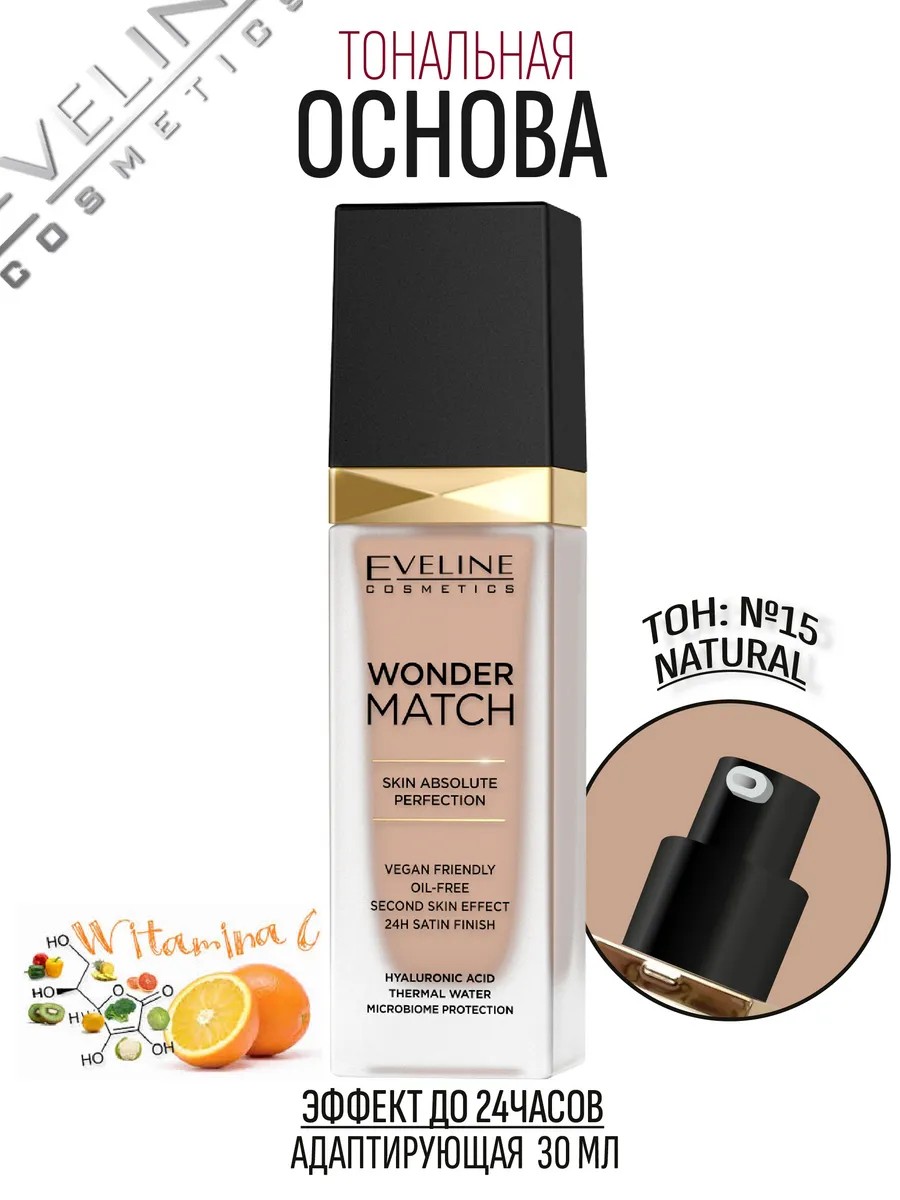 EVELINE Ттональная основа для лица Wonder Match 15 Natural 30 мл