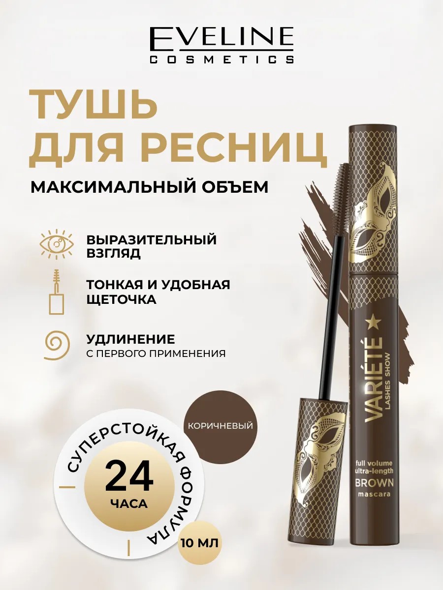 EVELINE Тушь для ресниц Variete Lashes Show удлинение, коричневая