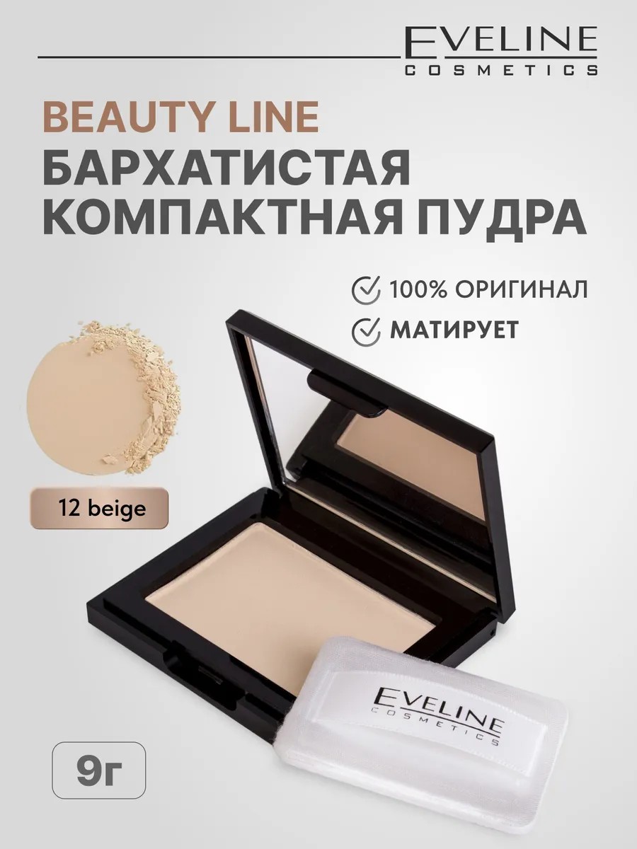 EVELINE Бархатистая компактная пудра BEAUTY LINE тон 12 beige