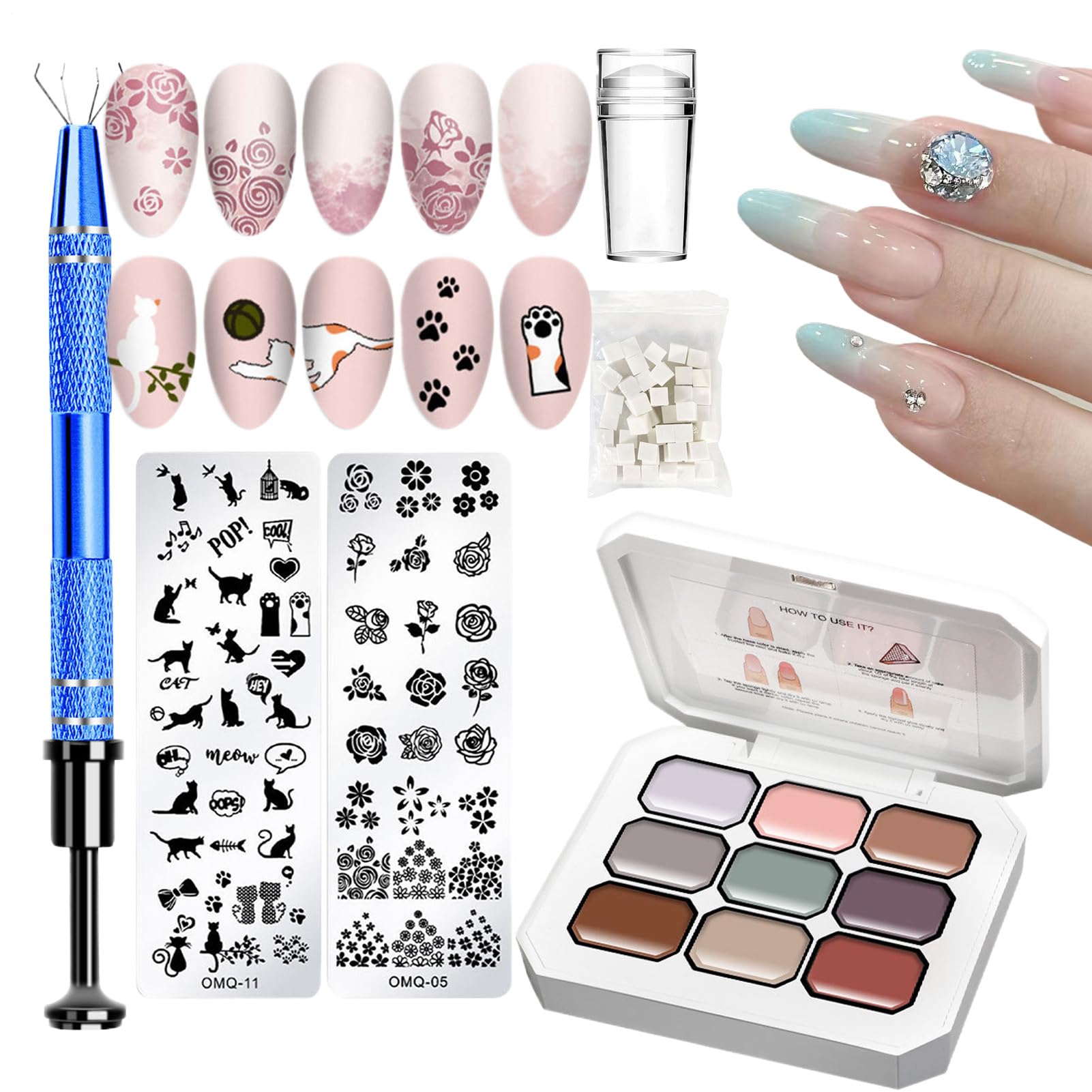 With its metal clip and included sponges, this solid gel nail polish simplifies manicures, making them quick and accessible for women, girls, and adults. Whether at home or applied by a salon technician, easily create intricate artistic designs. This solid gel nail polish is ideal for those who want to personalize their look without complications. Use it to achieve flawless results while enjoying a simple and intuitive process. Features: Name: Nail Gripper Set Product List: 1 Nail Polish (9 colors) 1 Sponge Gripper 100 Sponge Pads 1 Silicone Stamper 2 Stamping Pads Note: Due to different lighting and screen settings, the item's color may be slightly different from the picture. Due to different manual measurements, please allow a 1-2 cm size difference. SAFETY WARNING Not applicable