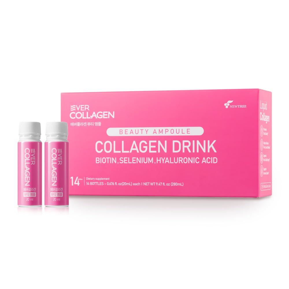 CONVENIENT On-the-GO - Designed for busy lifestyles, each single-serve drinkable ampoule with delicious berry flavor offers a quick beauty boost that's easy to carry and enjoy anytime, anywhere. BEAUTY BOOST for SKIN HYDRATION - Keep skin looking youthful and hydrated with Ever Collagen Beauty Ampoule, a daily supplement that encourages a healthy, radiant glow from within. SUPPORTS RADIANT SKIN, HAIR NAILS - Formulated in Korea, this daily collagen supplement enhances skin radiance, hair strength, and nail health, making it an essential part of any beauty routine. TOTAL BEAUTY SOLUTION with SELENIUM: Enhance your beauty regimen with a Selenium-infused formula that also boosts immunity. 1,000mg LOW MOLECULAR MARINE COLLAGEN - Packed with 1,000mg of premium type I, III low molecular marine collagen peptides, this drinkable collagen supplement is crafted for maximum absorption and effectiveness.