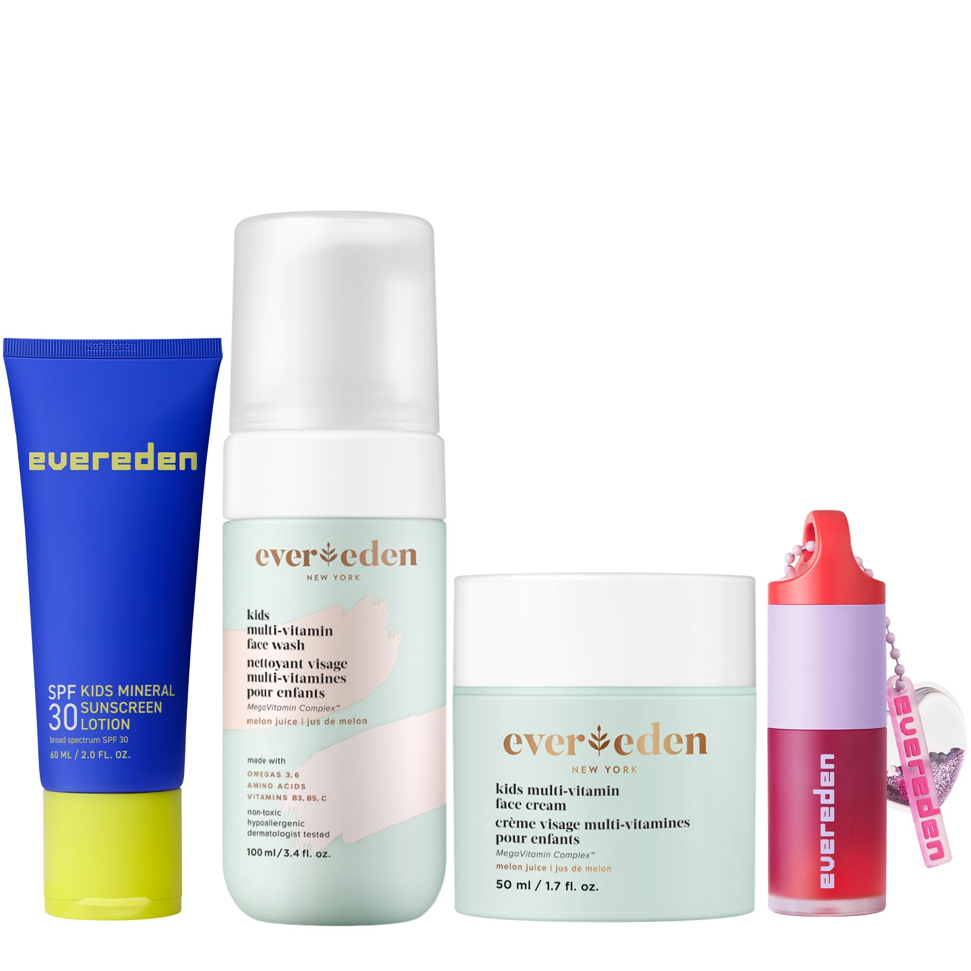 Evereden Daily Routine Set & Non-Toxic Lip Gloss: Clean & Vegan Skin Care for Kids - Nourishing Tween Skincare with Multi-Vitamin Face Wash Face Cream SPF 30 Sunscreen & Tinted Lip Gloss