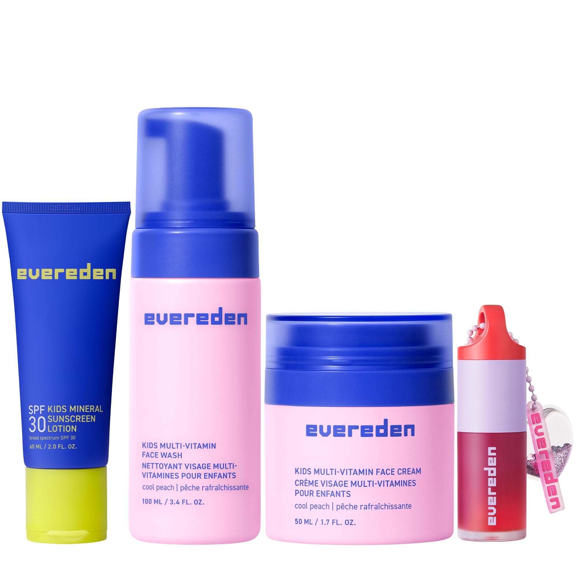 Evereden Daily Routine Set & Non-Toxic Lip Gloss: Clean & Vegan Skin Care for Kids - Nourishing Tween Skincare with Multi-Vitamin Face Wash Face Cream SPF 30 Sunscreen & Tinted Lip Gloss