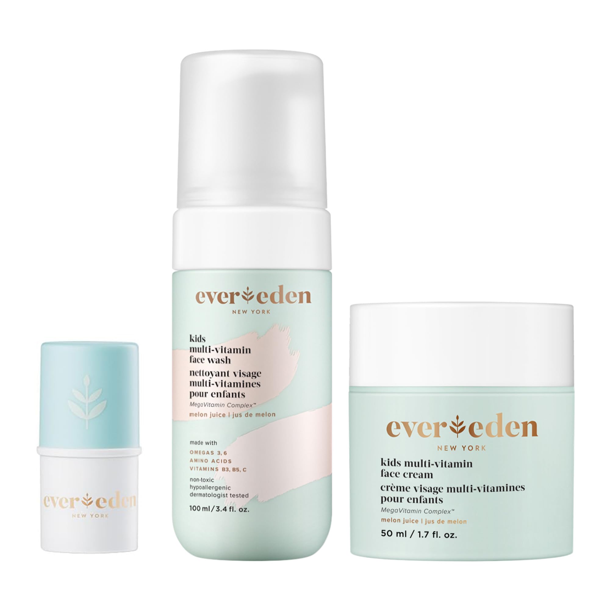 Evereden Kids Happy Face Duo Melon Juice and Lip Balm - Multi-Vitamin Kids Face Wash Face Cream and Lip Balm Set - Clean & Vegan Skin Care for 3+