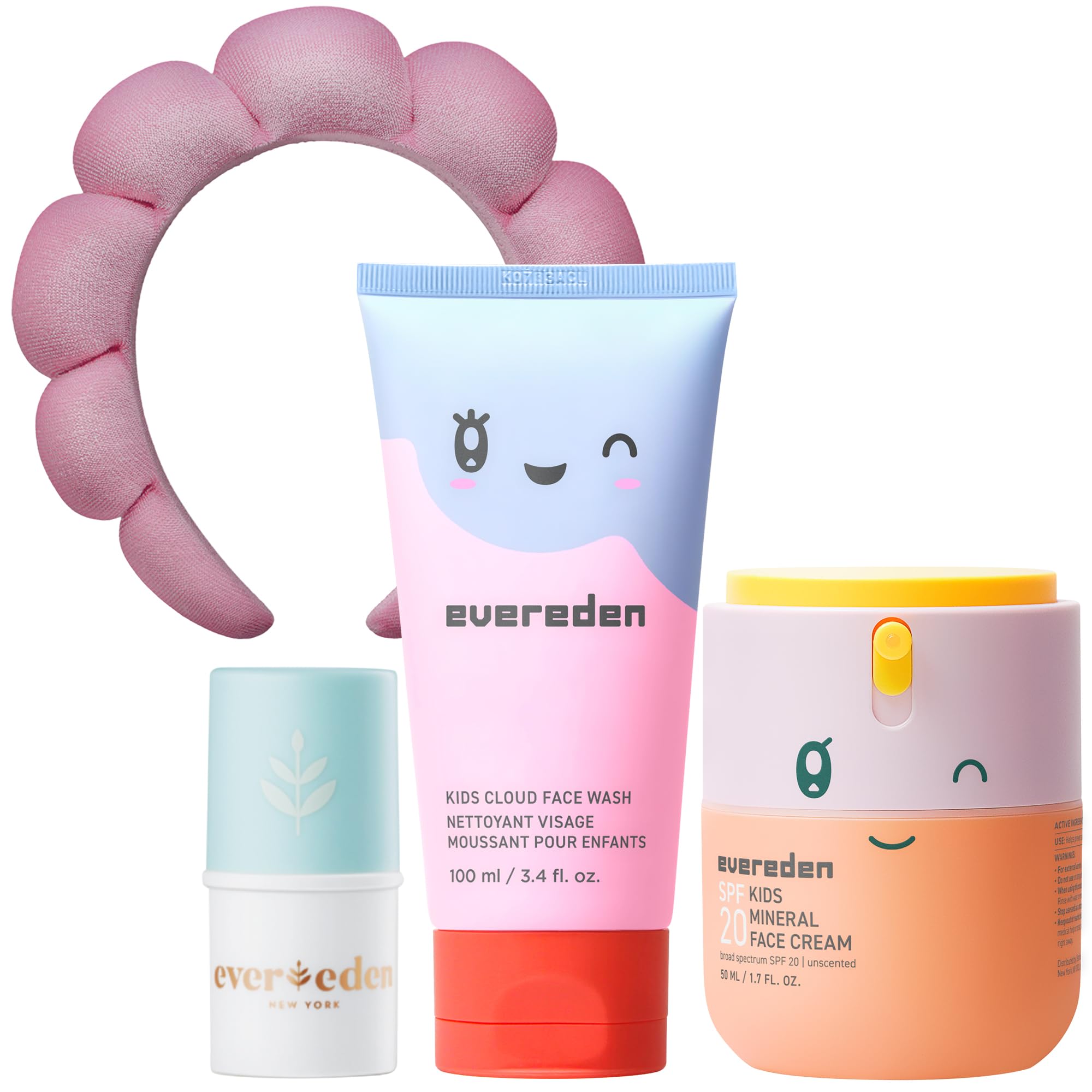 Evereden Kids Healthy Morning Duo with Headband for Girls and Baby Lip Balm: Clean & Vegan Skin Care | Cloud Face Wash SPF 20 Mineral Face Cream | Non-Toxic & Easy-to-Use