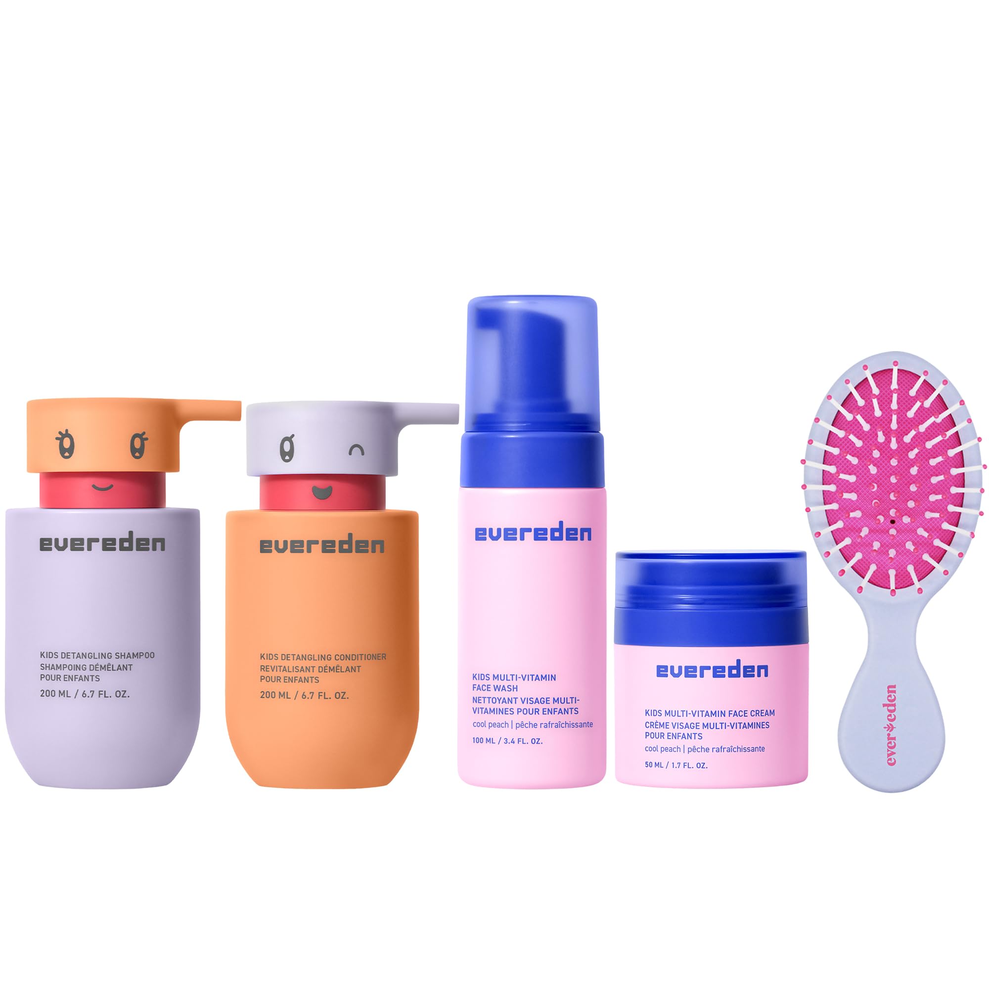 Evereden Kids Routine Bundle - Happy Hair Duo Detangling Shampoo and Conditioner + Multi-Vitamin Face Wash and Face Cream for Kids 3+