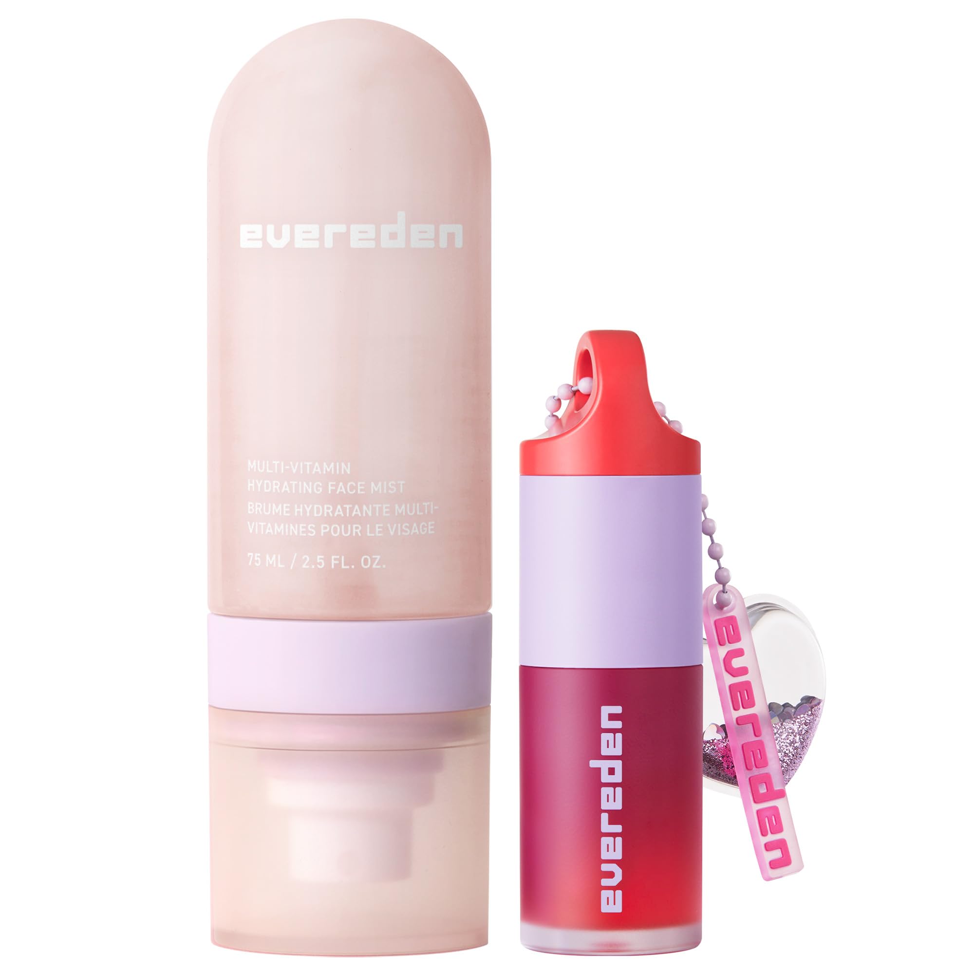 Evereden Kids Ruby Red Tinted Non Toxic Lip Gloss & Kids Multi-Vitamin Hydrating Face Mist Set: Nourishing Preppy Skincare Face Spray and Safe Girls Makeup for 6 & Up - Nourish, Moisturize, & Protect