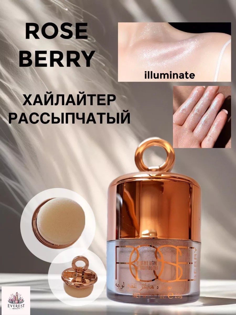 EVEREST BEAUTY Хайлайтер для лица и тела сухой рассыпчатый Rose Berry Illu
