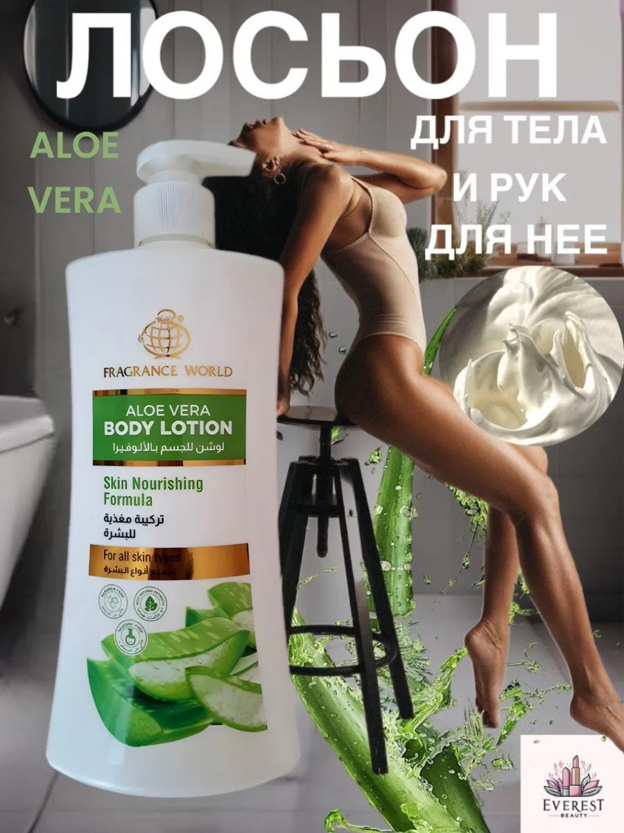Увлажняющий лосьон для тела с экстрактом алоэ вера от Fragrance World – это уходовое средство для тех, кто хочет превращать ежедневный уход за телом в ритуал красоты. Молочко с насыщенной текстурой глубоко увлажняет и восстанавливает кожу, разглаживая ее и делая идеально мягкой. Специально разработан для сухой кожи и восстанавливает ее гладкость, защищая от сухости. Его формула обогащена натуральными экстрактами, которые эффективно питают и восстанавливают эпидермис. Бархатистая, мягкая текстура быстро впитывается, создавая защитный барьер, удерживающий влагу в течение 24 часов. Питательный крем лосьон помогает интенсивно увлажнить кожу, мгновенно устраняя сухость, шелушение и стянутость. Действие натуральных масел и активных компонентов, улучшают текстуру кожи, оказывают благоприятное воздействие на естественный тонус, способствуя максимальному насыщению влагой даже обезвоженной, склонной к раздражению сухой кожи.У косметического средства легкий, ненавязчивый аромат алоэ вера, который будет окружать Вас нежностью и свежестью. Рекомендуем наносить крем ежедневно после принятия душа, ванн или по мере необходимости. Небольшое количество распределите по поверхности кожи тела (можно также использовать для рук и ног) массажными движениями до полного впитывания. Крем не создает пленку, не оставляет жирных следов и ощущения липкости. Использование крема перед сном способствует снятию усталости и обеспечивает полноценный спа-уход. Lotion подходит как для нормальной кожи, так и для очень сухой, склонной к экземе, эффективно восстанавливает и смягчает кожу, оставляя ее гладкой, упругой и красивой. После молочка кожа станет мягкой, увлажнённой, приобретёт ровный красивый тон и естественное сияние.Молочко для тела смягчает огрубевшую кожу, препятствует образованию мелких морщинок, моментально восстанавливает водный баланс кожи. Подарите Вашей коже красоту, комфорт и восхитительный аромат. И наслаждайтесь гладкой нежной ухоженной кожей и приятным запахом на протяжении всего дня.