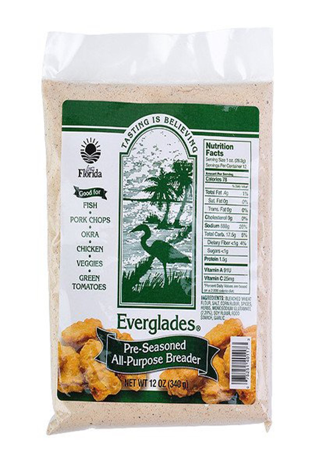 1-12oz bag of Everglades Seasoning Pre-Seasoned All Purpose Breading Mix./br/brCountry Of Origin: United States. Item Package Weight:0.354 kg. Item Package Dimensions:3.3 cm L X 14.5 cm W X 19.6 cm H. Product Type:Grocery./br/brGTIN: 885370156850 075251401173. Best Sellers Rank: See Top 100 in Grocery & Gourmet Food. Protein: 1.5 Grams. Package Weight: 0.34 Kilograms. Weight: 12 Ounces. Package Information: Bag. Number of Items: 1. Unit Count: 12.0 Ounce. Item Form: Powder. Brand: Everglades. : B015PTIZC0. Manufacturer: Everglades Foods, Inc. UPC: 885370156850 075251401173. Item model number: 12Breader. Product Dimensions: 7.72 x 5.71 x 1.3 inches 12 Ounces. Is Discontinued By Manufacturer: No.