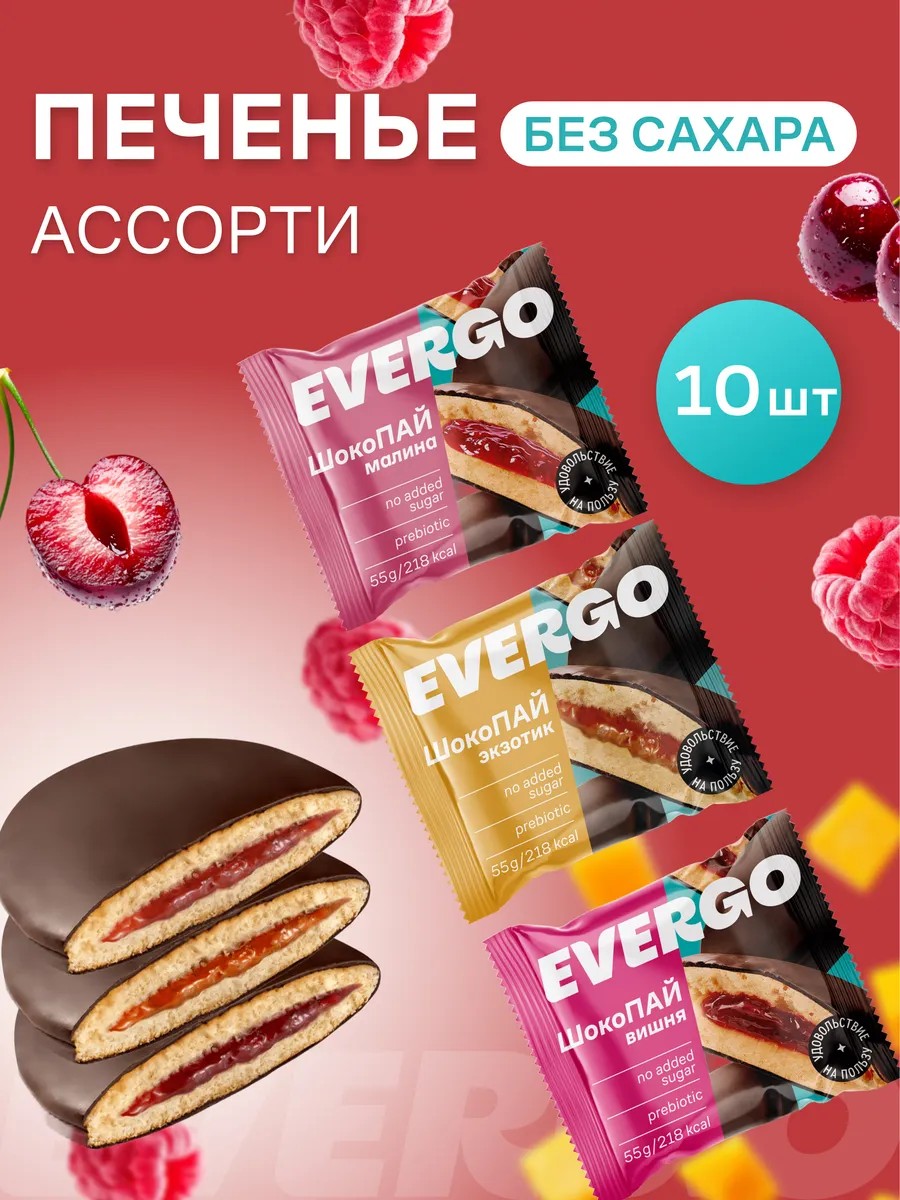 EVERGO Печенье без сахара в шоколаде ассорти 10 шт