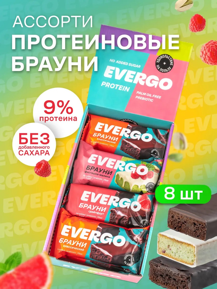 EVERGO Протеиновое печенье без сахара ассорти Брауни 8 штук по 50 г