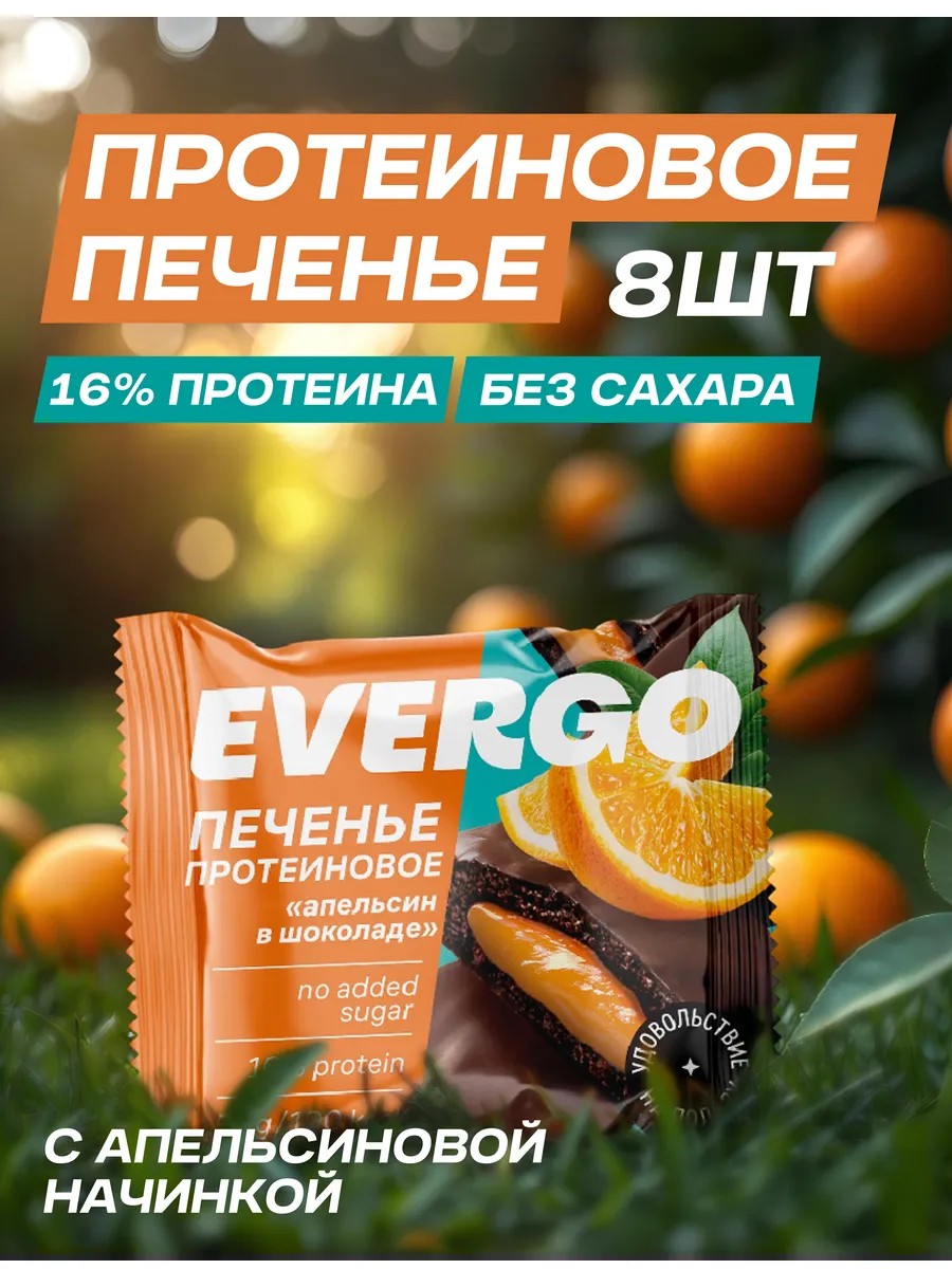 EVERGO Протеиновое печенье без сахара с начинкой апельсин 8шт 50 гр
