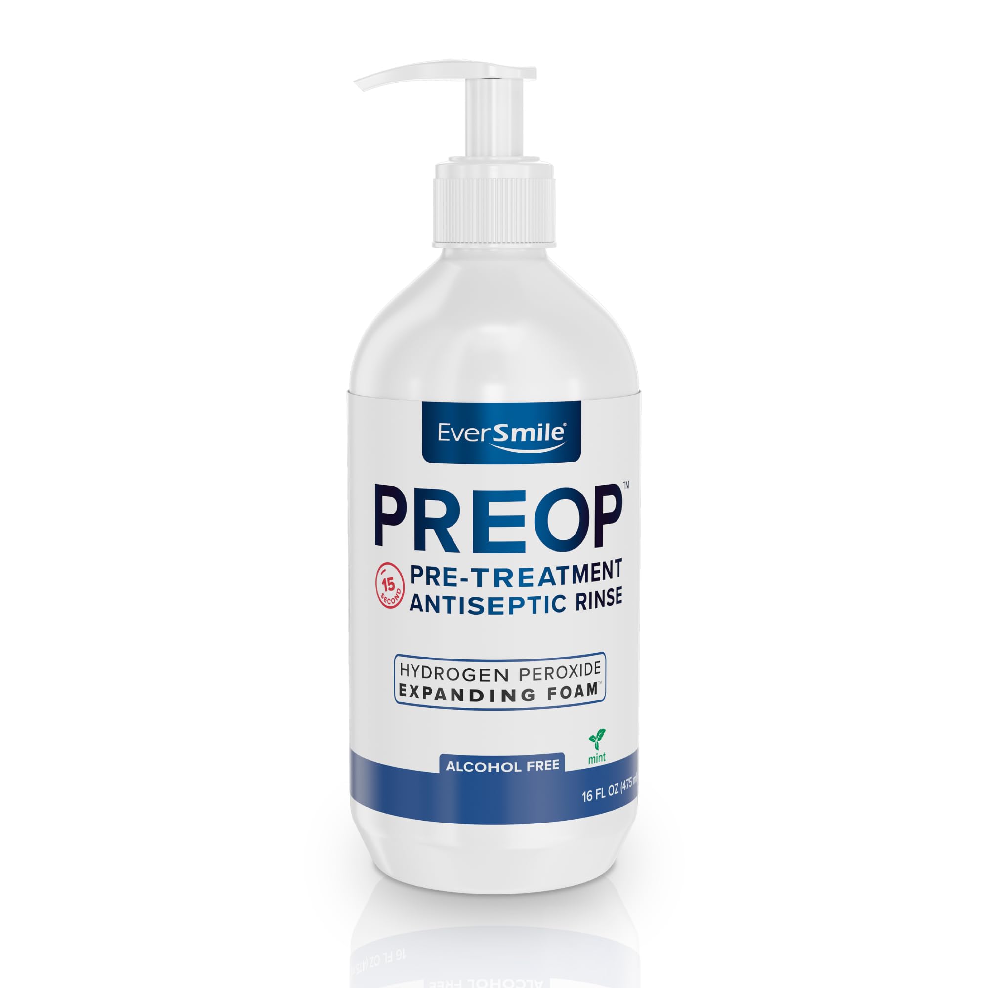 EverSmile PreOp Foaming Rinse Pretreatment Antiseptic Mouthwash with Hydrogen Peroxide Foam Alcohol Free Whitening Rinse with Minty Formula to Fight Bad Breath 100 Uses Per 16 oz Bottle (1 Pack) 16 Fl Oz (Pack of 1)