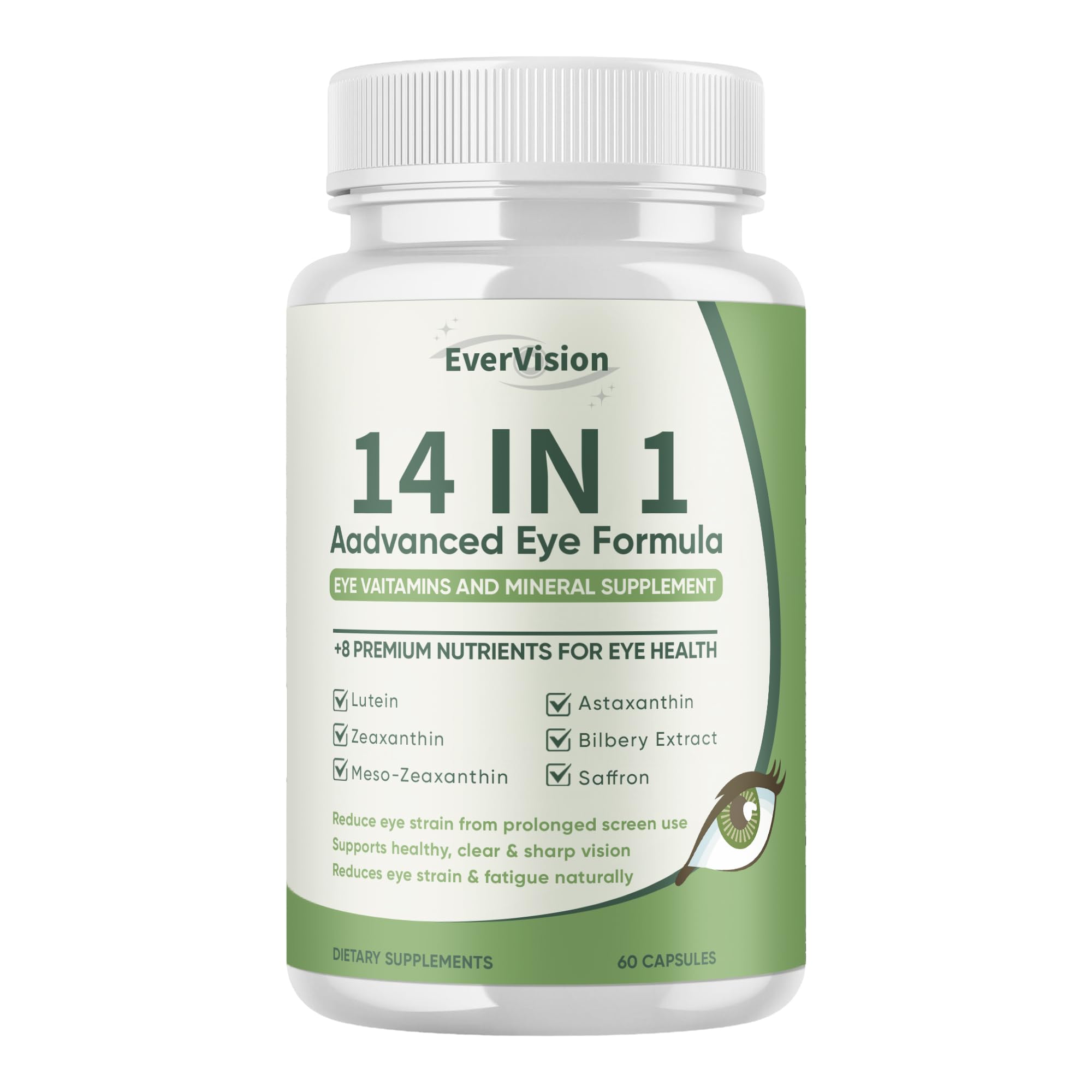 Evervision 14 in 1 Advanced Eye Formula Eye Vitamin and Mineral Supplement with Zinc Lutein Zeaxanthin & Bilberry Extract 60 Capsules (1)