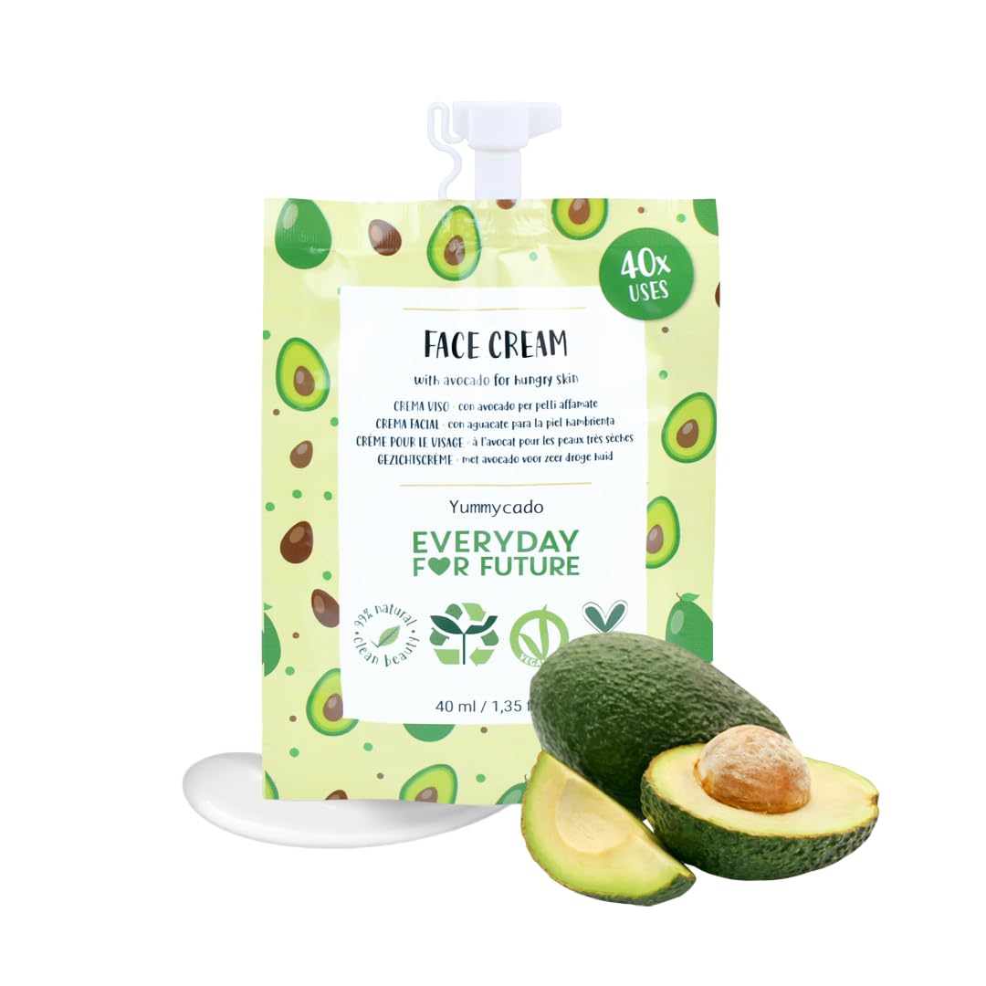 [AFFORDABLE LUXORY] - This cream is designed to nourish and rejuvenate your skin while providing a relaxing, spa-like experience at an affordable price. [SUSTAINABLE PACKAGING] - With sustainability always in mind, our pouches are made with up to 70 less plastic than traditional packaging. [NATURAL, VEGAN, AND CRUELTY FREE] - Our Avocado Face Cream is vegan and cruelty-free, made with 99 natural ingredients, providing you with a gentle yet effective skincare solution. With 40 uses per pouch, you can enjoy the soothing properties of avocado on your skin for weeks to come. [NOURISHING FACE CREAM] - The avocado properties in our face cream work to hydrate and soothe your skin, leaving it feeling refreshed and revitalized. Say goodbye to dry, dull skin and hello to a radiant, glowing complexion.