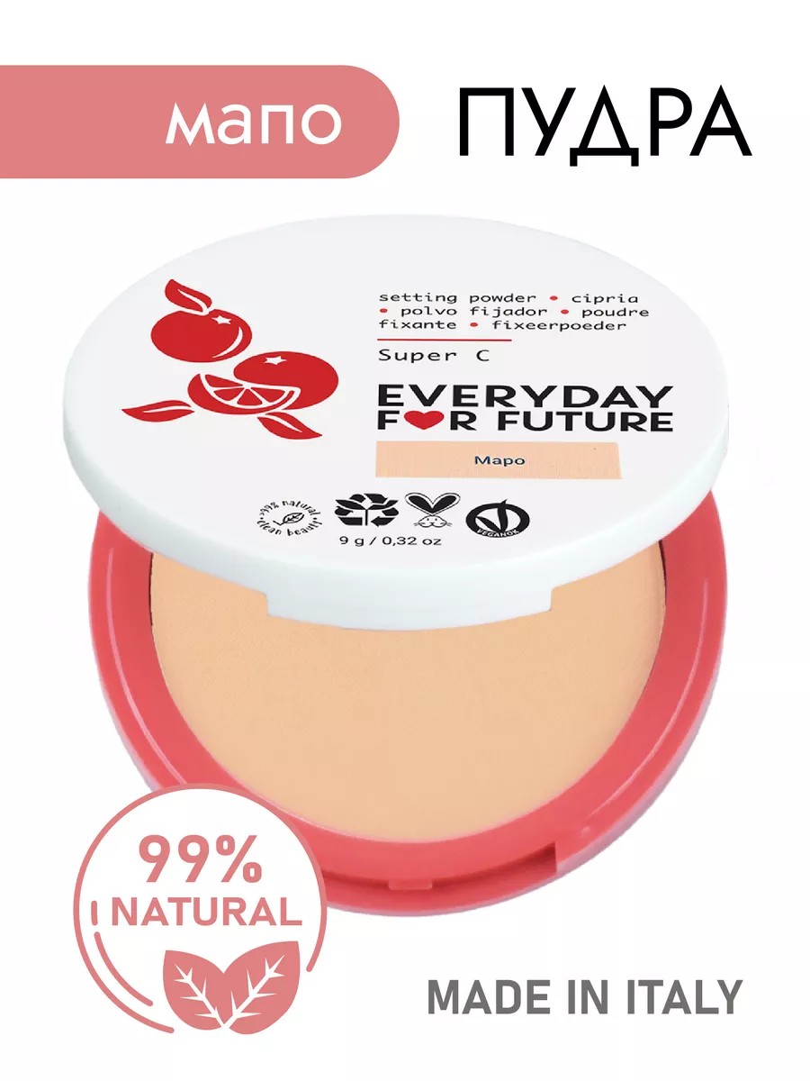 Натуральная компактная пудра надежно фиксирует макияж лица, выравнивает тон кожи и создаёт невесомое покрытие с эффектом мягкого фокуса. C органической пудрой апельсина и цеолитом. Everyday For Future. EverydayForFuture. EFF. E F F. Эвередей.