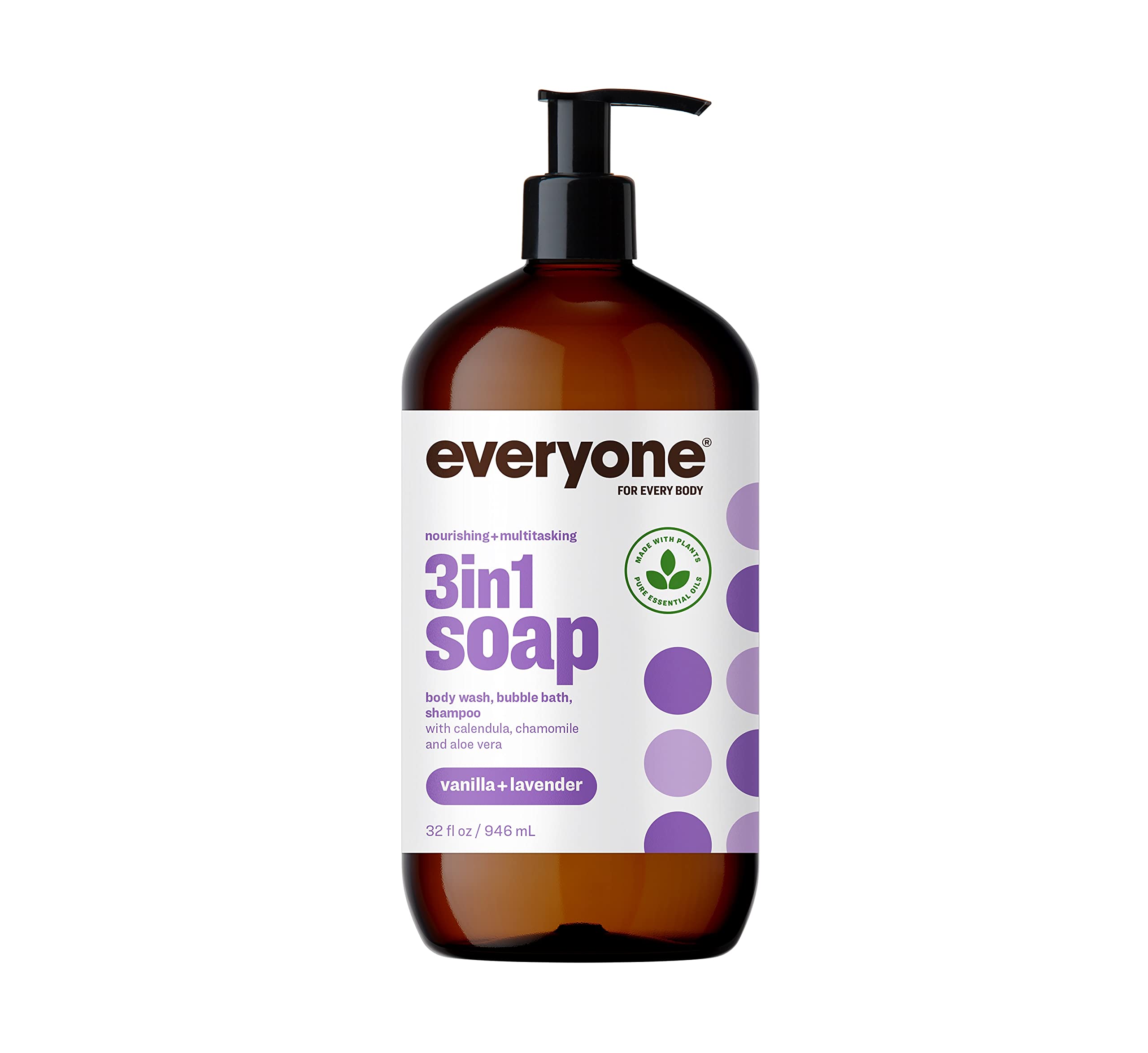 This is not your average soap. Everyone 3 in 1 Soaps combine gentle coconut cleansers, organic plant extracts, and vitamins E and B5 to nourish skin and hair while cleansing it of the day's dirt and impurities. We know life gets crazy, that's why our convenient 3-in-1 soaps work great as a shampoo, body wash, bubble bath, and even shave gel for a simplified routine. Plus, less bottles mean less plastic. At EO Products, we believe the best resources come from nature. That is why we are committed to our zero-waste mission. Our products are always made with reduction and repurposing in mind, this includes our recyclable packaging. Since 1995, we've made our products from domestic and imported ingredients in our family-owned and -operated factory in San Rafael, California. We learned early on that the only way to meet our own high standards was to take responsibility for everything ourselves. From our family to yours, enjoy.Zero Waste Mission: In 2019, we diverted 90 of our waste from landfills. Our packaging is made from recycled material. We always use 100 recyclable packaging for order shipping, too. Clean Promise: Everyone 3in1 Soap is EWG verified, GMO free, cruelty free, gluten free, triclosan free, and synthetic fragrance free. Use: Our 3in1 Soap is a powerful do-it-all cleanser that will give you a refresh from head to toe. Whether as a body wash, shampoo, or bubble bath, the creamy sweetness of vanilla and the relaxing essence of lavender will swirl you and your senses into a nourishing clean for your hair and skin. Scent: Everyone 3in1 Vanilla and Lavender Soap celebrates the powerful calming nature of lavender pure essential oil alongside the sultry sweetness of vanilla essence. Give yourself a moment of peace and give your hair, skin, and body a deep clean. Contains: (540) 32 Ounce 100 Recycled Plastic Bottles of Everyone 3in1 Vanilla and Lavender Soap. For a limited time, you may receive either bottle while we update our packaging. New Look, Same Great Product.