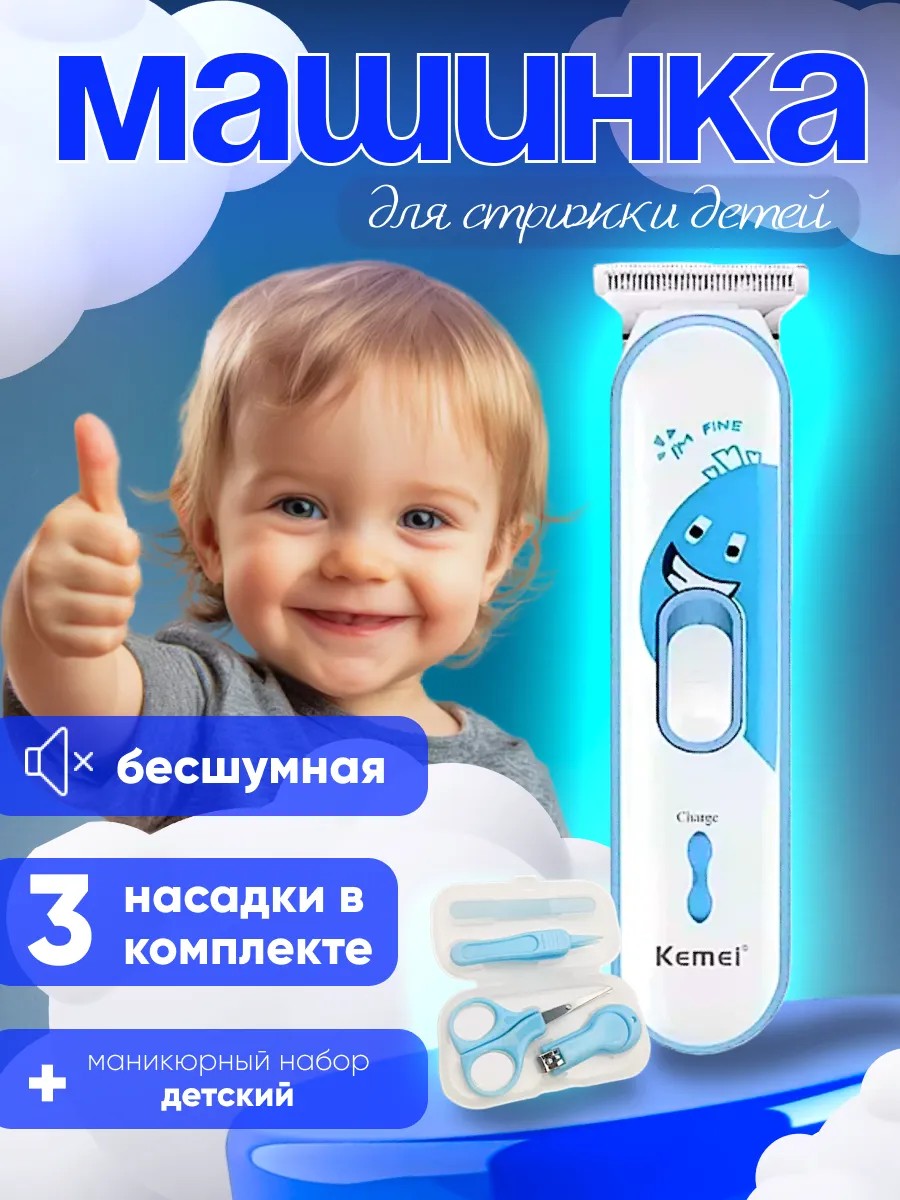 Комплект по уходу за ребенком 2 в 1, машинка для стрижки волос-триммер. Бесшумная безопасная профессиональная машинка для стрижки волос детская KM-963 плюс набор для безопасного ухода за ногтями малыша. Это специально разработанный профессионалами триммер для ухода за новорожденными и маленькими детьми, который безопасно и аккуратно срезает мягкие волоски вашего малыша, не повреждая нежную кожу. Детская машинка для стрижки, универсальный детский триммер по уходу за мальчиками и девочками имеет лезвия из нержавеющей стали, которые остаются острыми длительное время, так как ножи бритвы самозатачиваются в процессе работы. Это обеспечат быстрый и качественный процесс подстригания, не поранят нежную кожу головы, а также не запутаются и не застрянут в волосах. В комплекте с триммером набор инструментов для безопасного ухода за ногтями малыша в отдельном боксе, удобно хранить и брать с собой. Триммер детский kemei 2 в 1 отличный выбор для вашего ребенка, вам не нужно ходить в парикмахерскую, вы замените детский салон для стрижки и ухода за ногтями профессиональными набором для детей КМ 963. Машинка подходит для сухой и влажной стрижки, абсолютно безопасно! Заряд аккумулятор держится до 60 минут, позволяет вам работать без перерывов, заряжается батарея полностью за 2 часа. В комплекте идет зарядное устройство. В комплекте сменные насадки разной длины, чтобы вы могли выбрать идеальную для вас длину. Триммер детский или машина для удаления волос оснащен технологией бесшумной работы, что делает процесс безопасным и комфортным для маленького человечка. Кроме того, наш аппарат очень легкий и компактный, что делает его удобным в использовании. Вы легко сможете взять его с собой в поездку, так как он занимает очень мало место в вашей сумке или чемодане. Машинка для стрижки подходит для удаления пушка длиной от 3 до 12 мм.Набор детский будет отличным подарком на рождение малыша, детский подарок для новорождённого и для мамы.