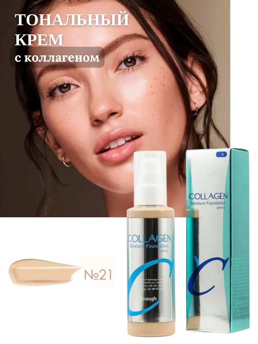Тональный коллаген 21 Collagen Enough Moisture Foundation для лица создан для обеспечения ровного тона. Он обеспечивает качественное покрытие и легкость нанесения, что делает его отличным выбором для ежедневного использования. Кожа становится гладкой благодаря содержанию коллагена в формуле, который помогает поддерживать ее эластичность и упругость.