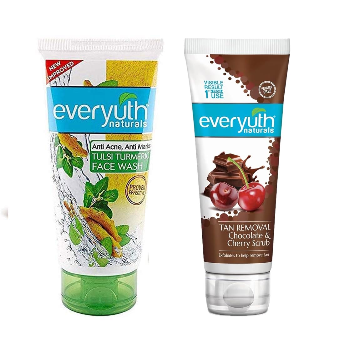 Everyuth Tulsi Turmeric Face Wash and 50g and Chocolate and Cherry Tan Removal Scrub 50gm Combo Pack