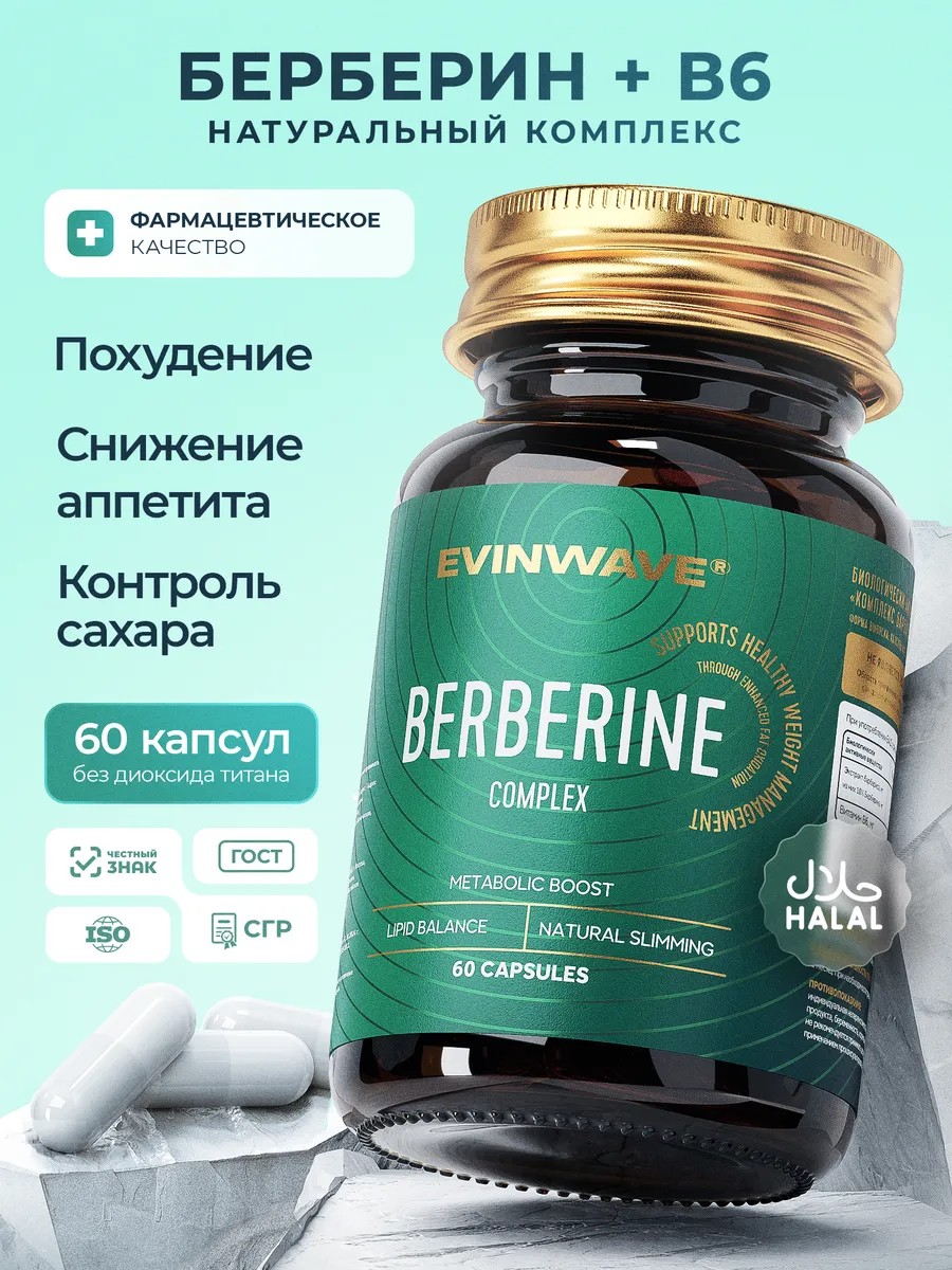 Пусть ваше похудение станет более эффективным и комфортным с "Берберином с витамином B6" от EVINWAVE. Добавьте бады для похудения берберин 1000 мг в свой ежедневный рацион и ощутите разницу. Рекомендуем: витамины для женщин от EVINWAVE устранят дефициты в витаминах и минералах во время диет. Достигайте своих целей с легкостью и удовольствием!