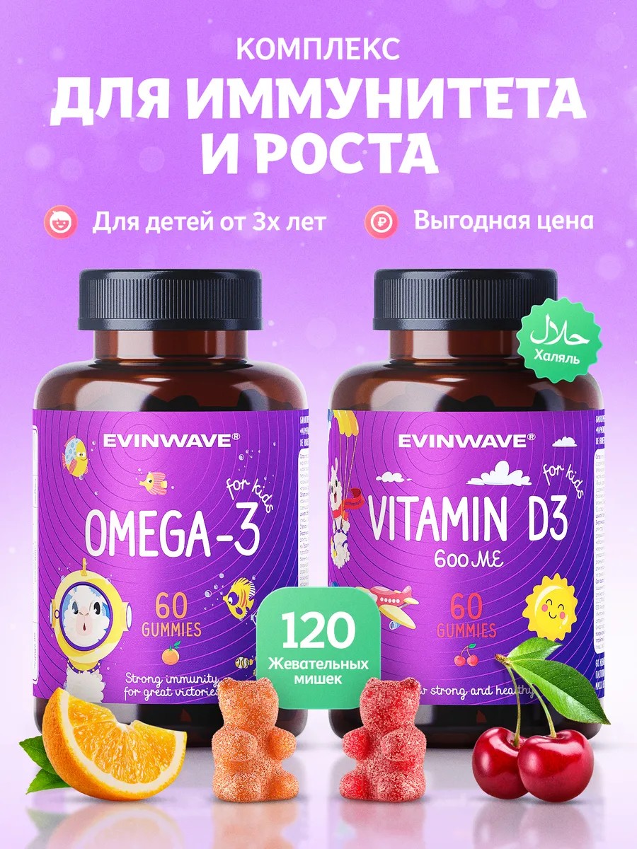 Обеспечьте своему ребенку здоровое развитие и активность с набором жевательных витаминов EVINWAVE Омега-3 и витамин D3 600 МЕ! Этот вкусный и полезный витаминный комплекс разработан специально для маленьких гурманов, которые не всегда хотят принимать обычные таблетки, жидкие добавки или огромные капсулы.