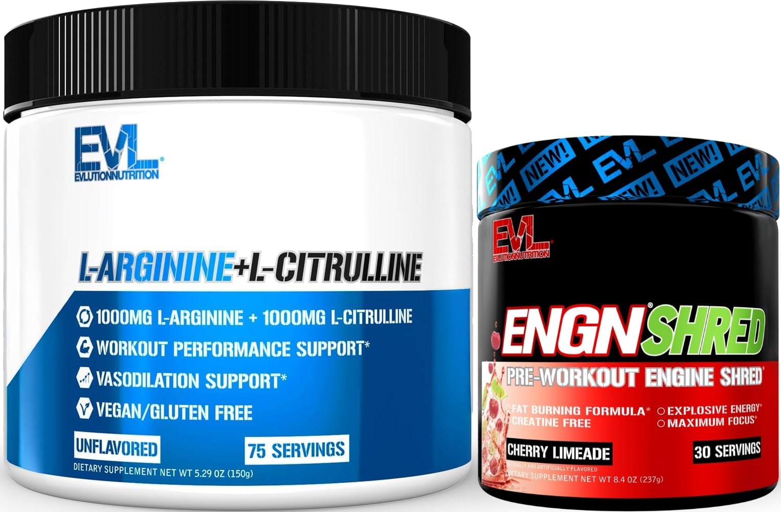 Evlution ENGN Shred Ultimate Pre Workout Powder (Cherry Lime 30 Servings) Plus L-Arginine and L-Citrulline Nitric Oxide Complex (Unflavored 75 Servings)