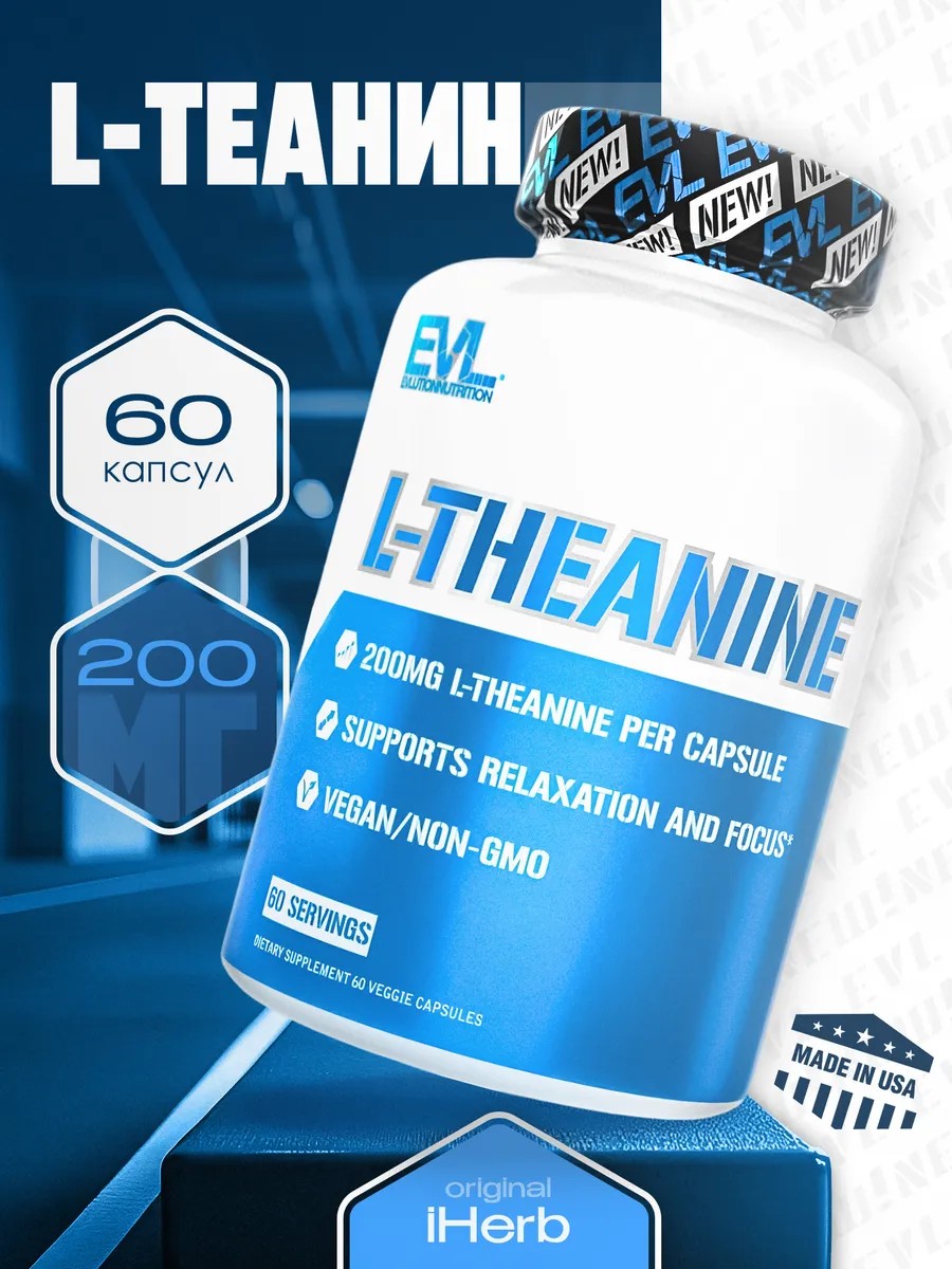 EVLution Nutrition L-теанин 200 мг 60 капсул