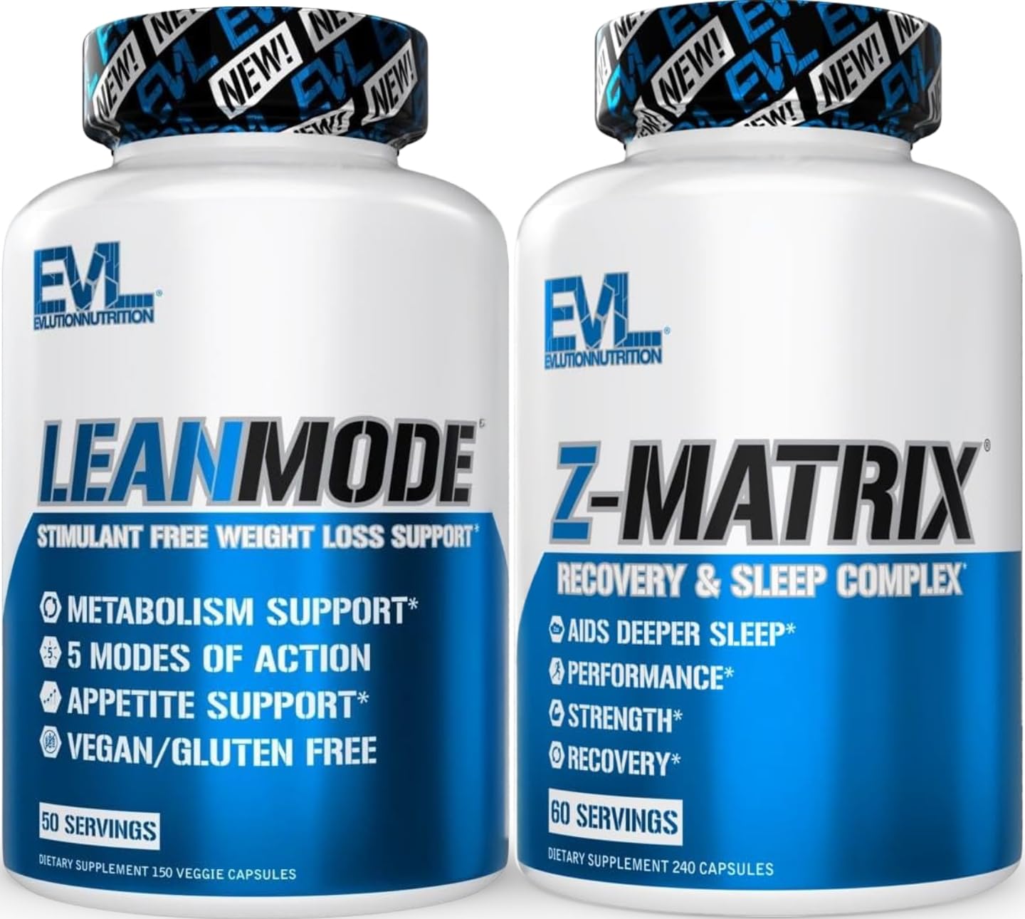 Evlution ZMatrix Magnesium and Zinc Post Workout Supplement (60 Servings) Plus LeanMode Multipurpose Fat Loss Support Supplement (50 Servings)