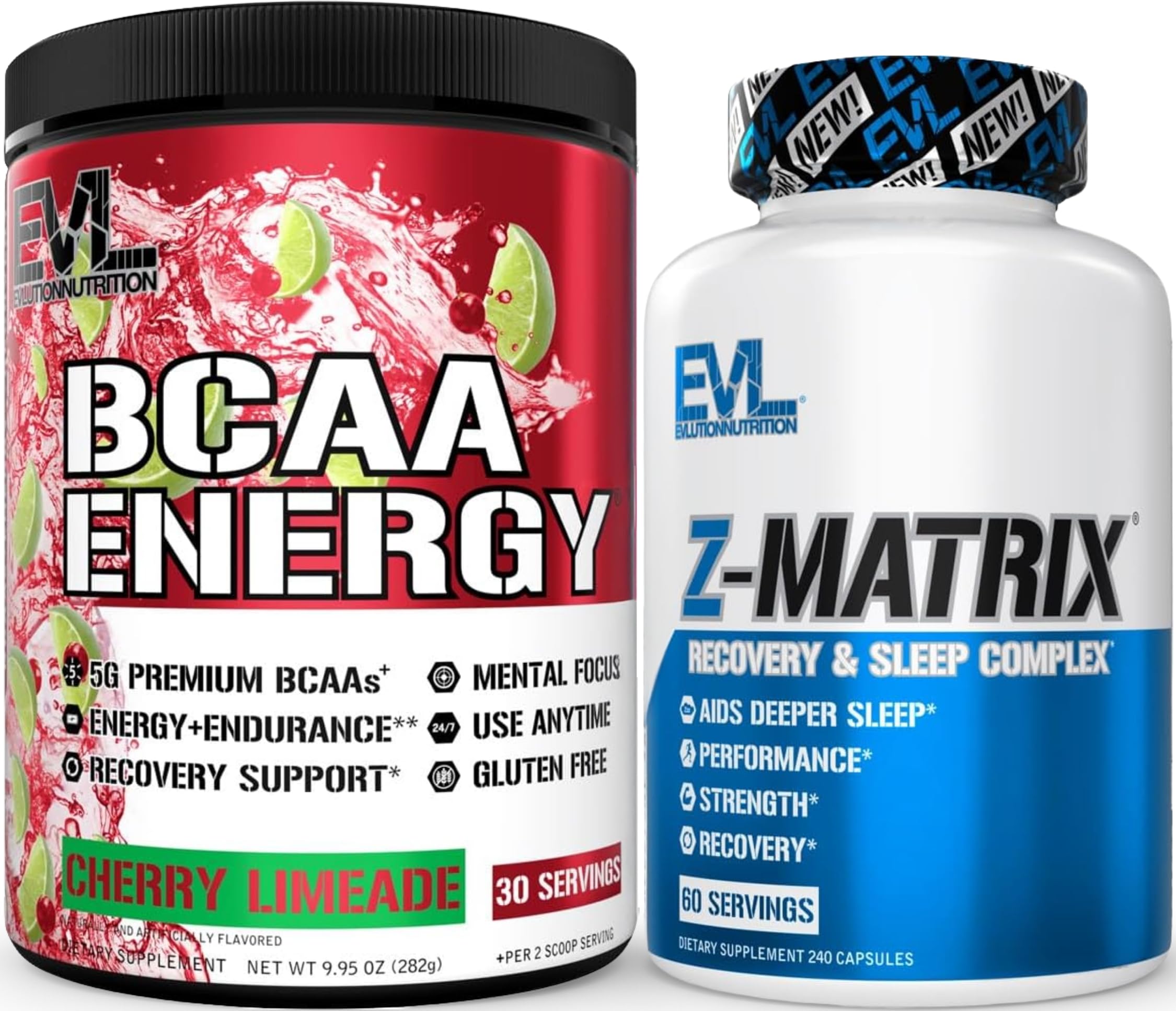 Evlution ZMatrix Magnesium and Zinc Post Workout Supplement (60 Servings) Plus Replenishing BCAAs Amino Acids Powder for Pre & Post Workout (Cherry Lime 30 Servings)