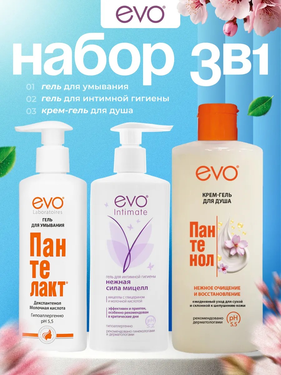 EVO Уходовый набор гелей для умывания и гигиены 1+1+1 шт